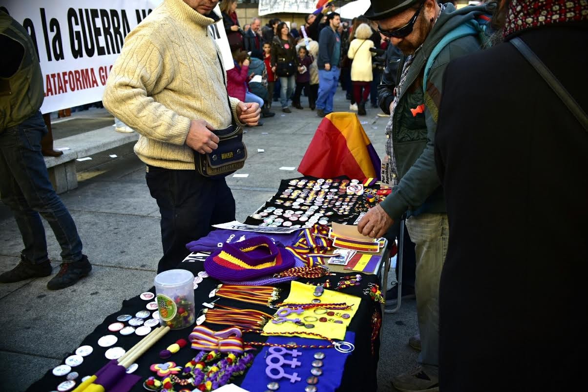 En las inmediaciones se colocaron puestos con chapas republicanas y emblemas feministas.
