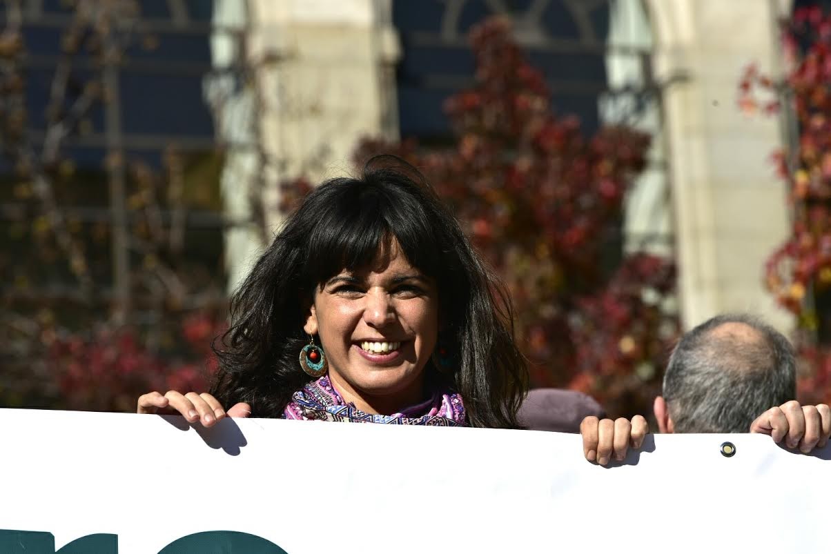 La diputada de Podemos en Andalucía, muy sonriente, no contó con el apoyo del líder de su partido.