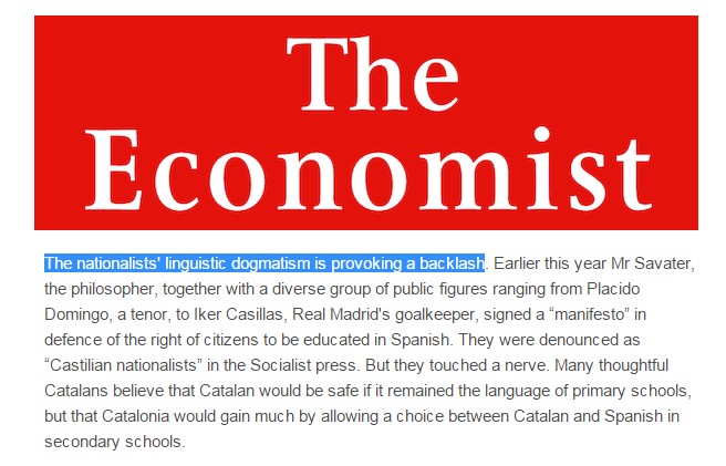 En noviembre de 2008 El Gobierno catalán arremetía contra 'The Economist' por denunciar el “dogmatismo lingüístico” de los nacionalistas. El semanario británico subrayaba que las autonomías han supuesto "el renacimiento de los caciques" con Chaves, Pujol y Fraga como ejemplos