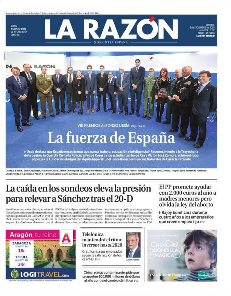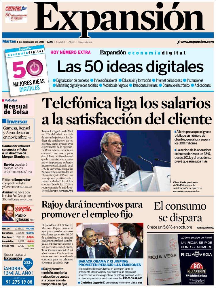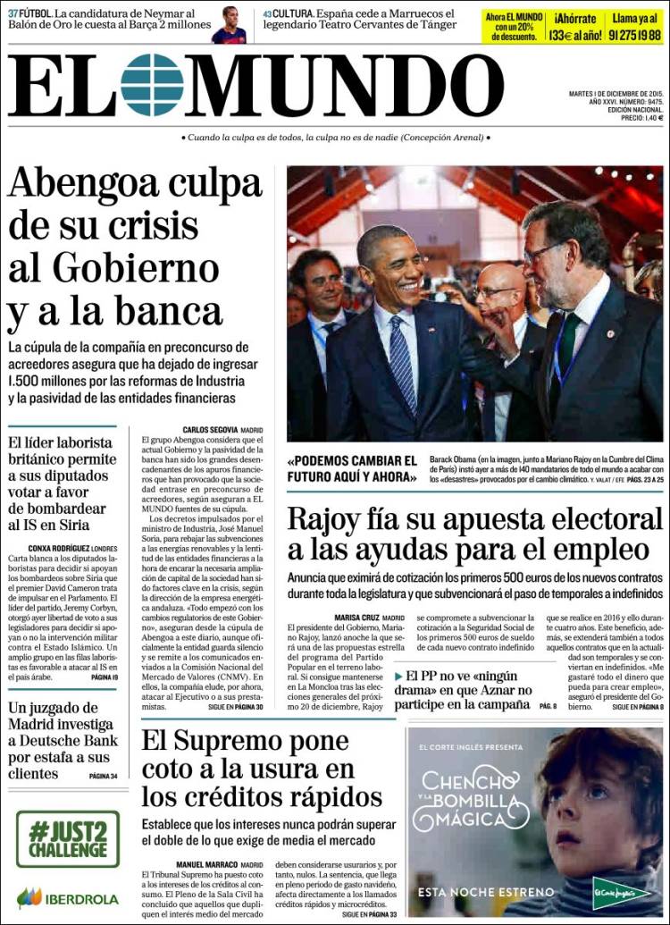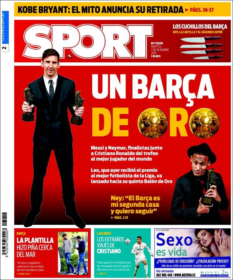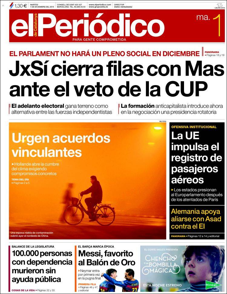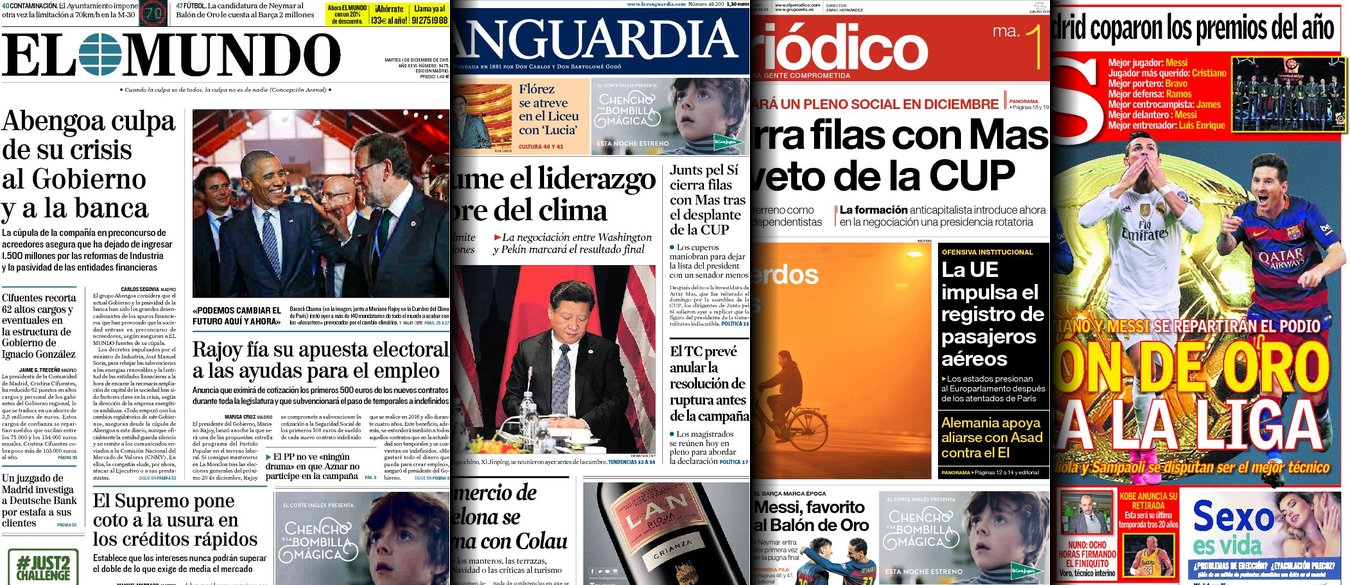 Portadas de los diarios El Mundo, El País, ABC, La Razón, La Vanguardia, El Periódico, Cinco Días, El Economista, Expansión, Marca, As, Mundo Deportivo y Sport.