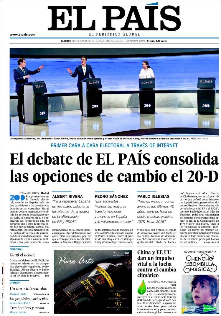 "El debate de El País consolida las opciones de cambio el 20-D"