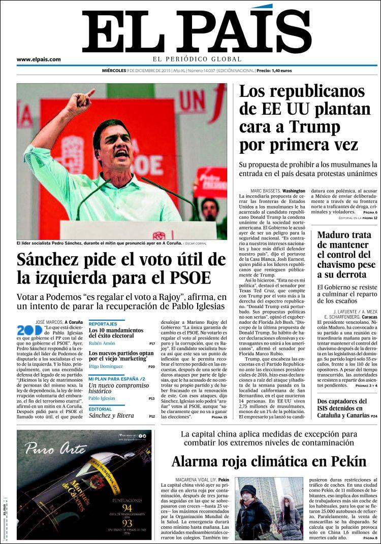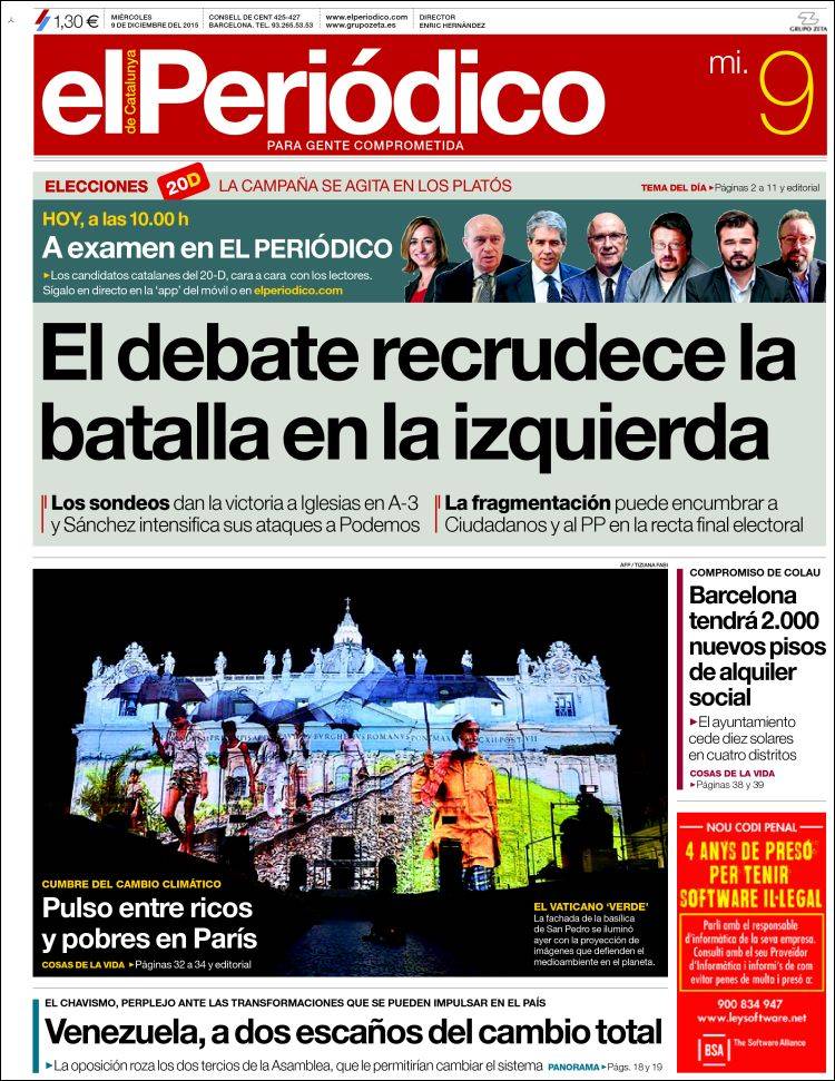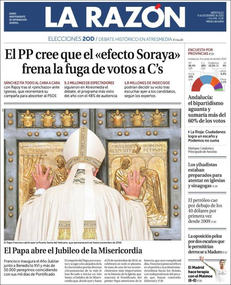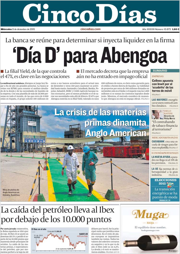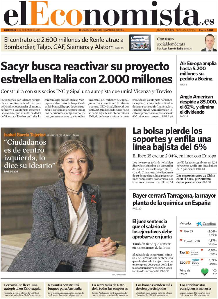 Portadas de los diarios El Mundo, El País, ABC, La Razón, La Vanguardia, El Periódico, Cinco Días, El Economista, Expansión, Marca, As, Mundo Deportivo y Sport.