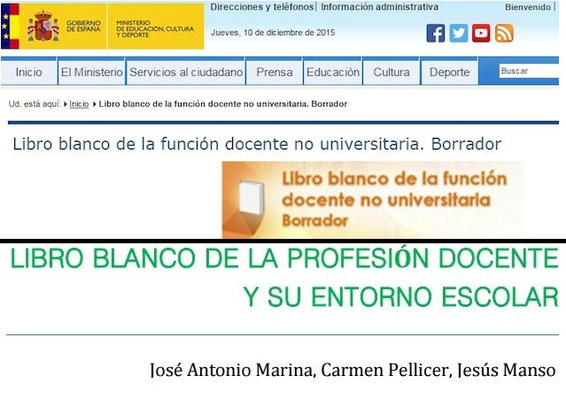 El Ministerio de Educación le cambió el título al Libro Blanco que encargó realizar al filósofo y catedrático, José Antonio Marina, en el mismo momento en que éste se lo entregó. El documento, realizado por Marina junto a Carmen Pellicer y Jesús Manso, se titula el Libro Blanco de la Profesión Docente. El gabinete dirigido por Íñigo Méndez de Vigo lo tituló Libro Blanco de la Función Docente.