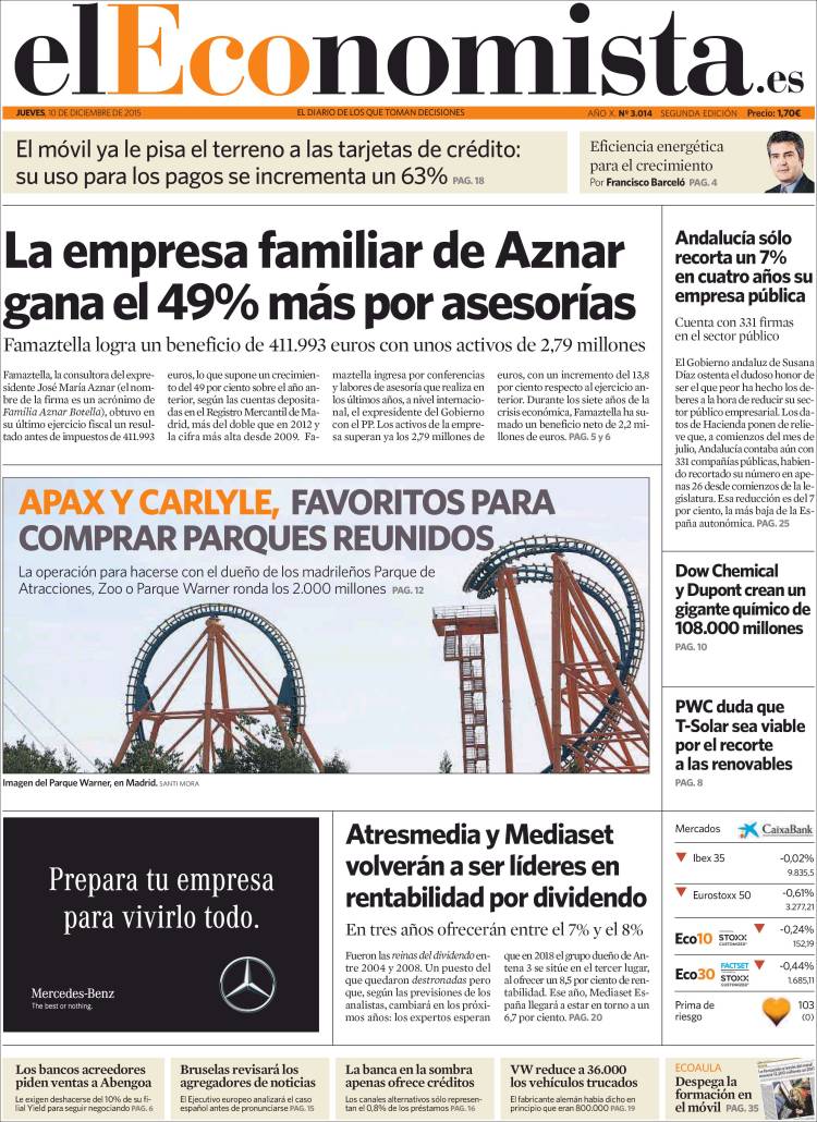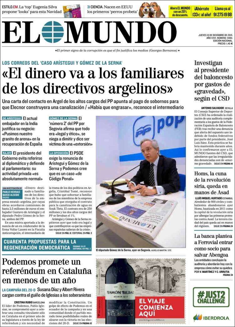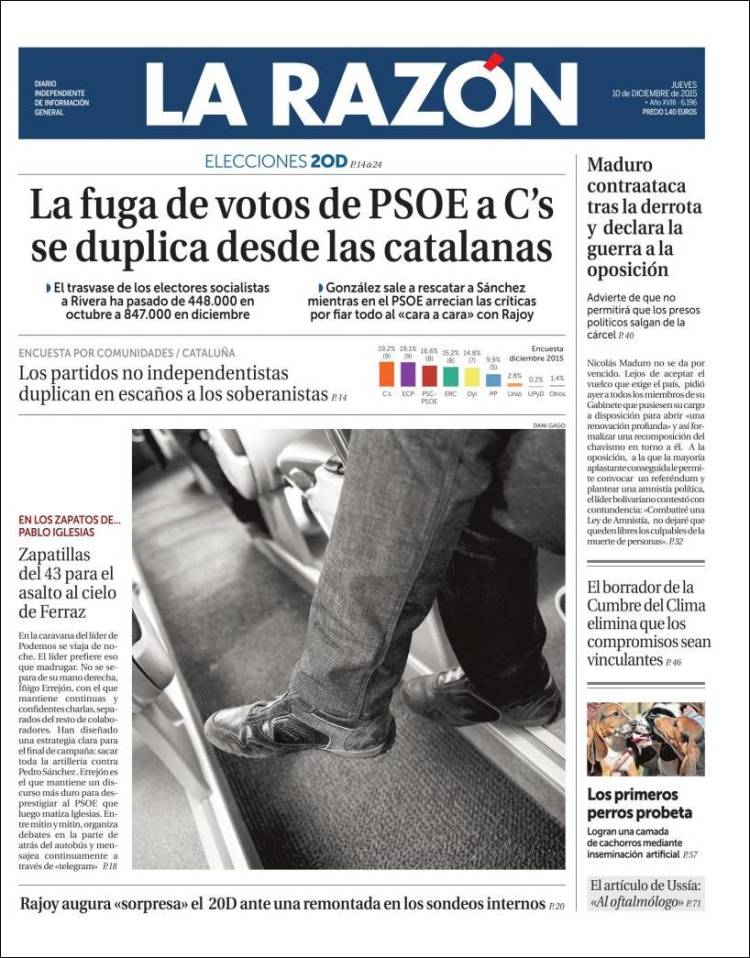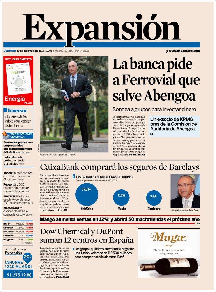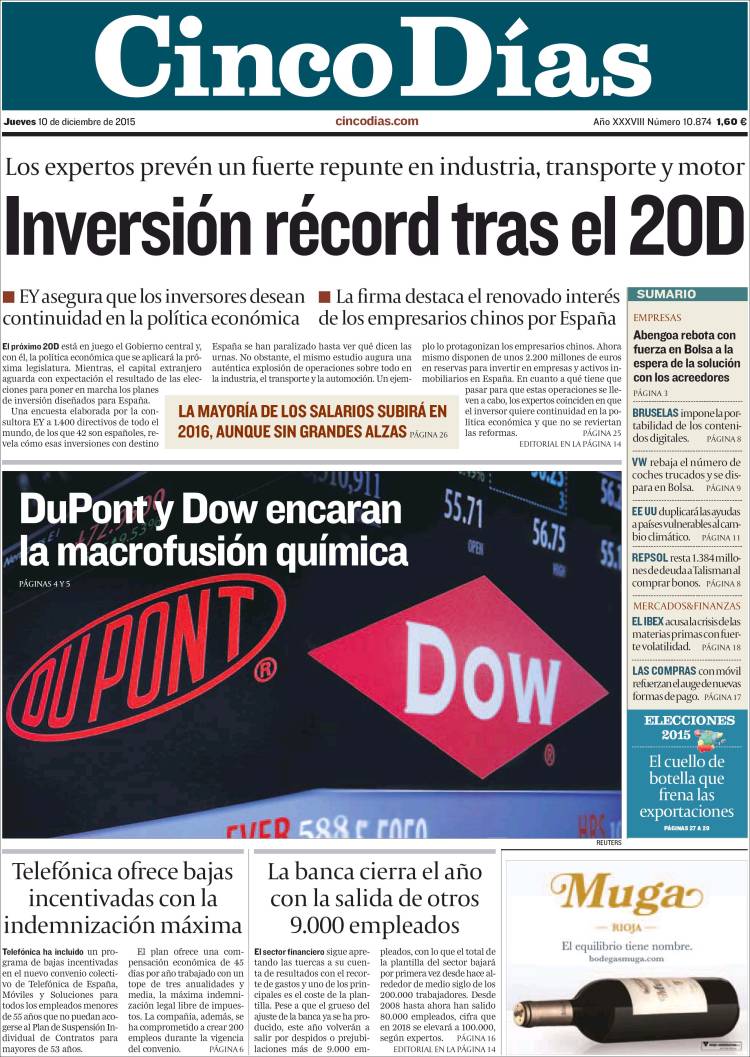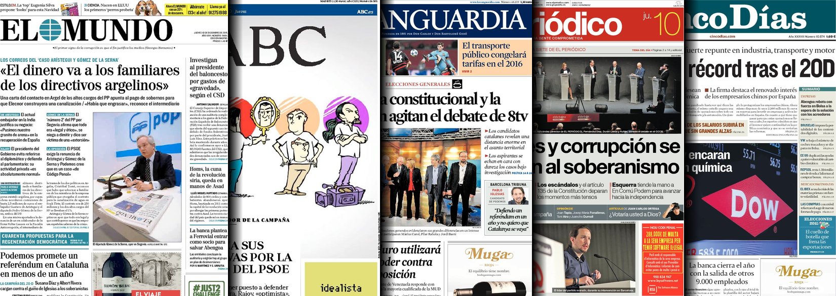 Portadas de los diarios El Mundo, El País, ABC, La Razón, La Vanguardia, El Periódico, Cinco Días, El Economista, Expansión, Marca, As, Mundo Deportivo y Sport.