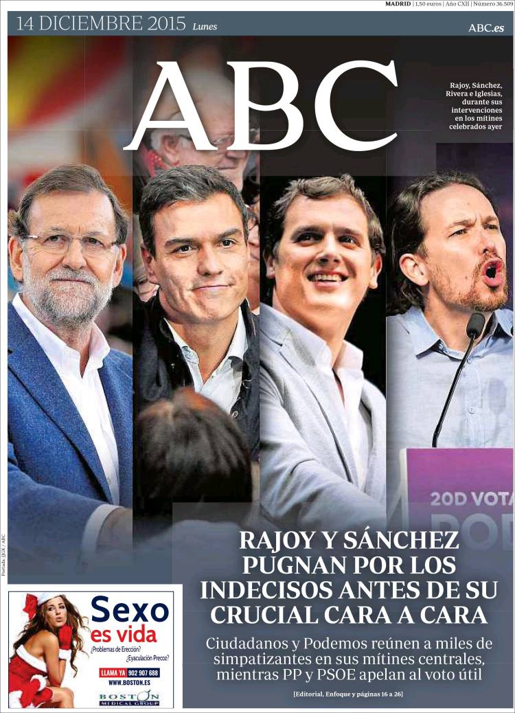 "Rajoy y Sánchez pugnan por los indecisos antes de su crucial cara a cara"