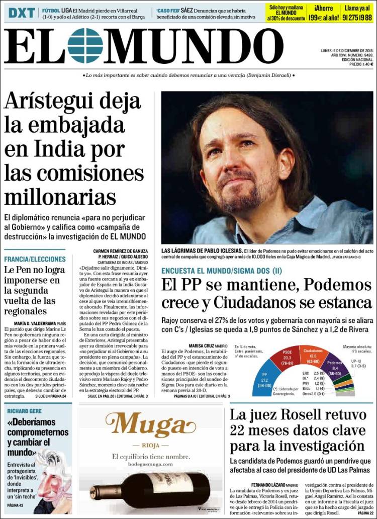 "Arístegui deja la embajada en India por las comisiones millonarias"