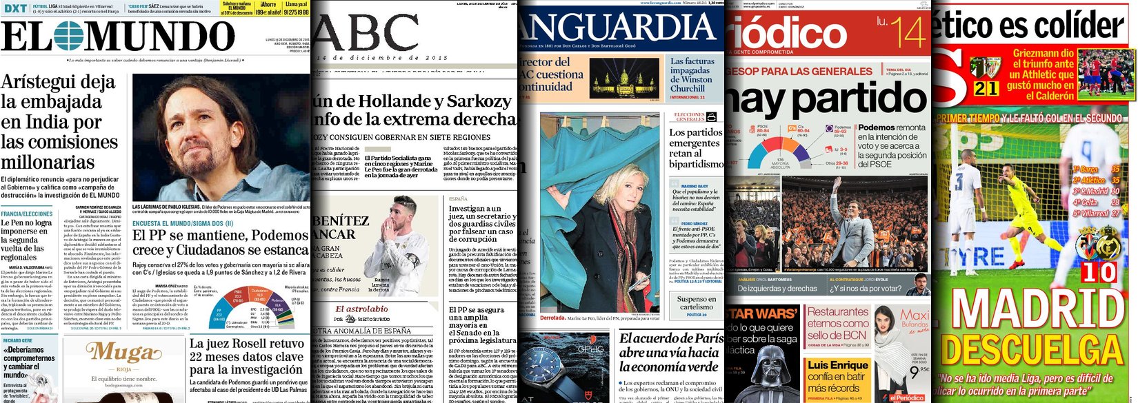 Portadas de los diarios ABC, As, El Periódico y La Vanguardia.