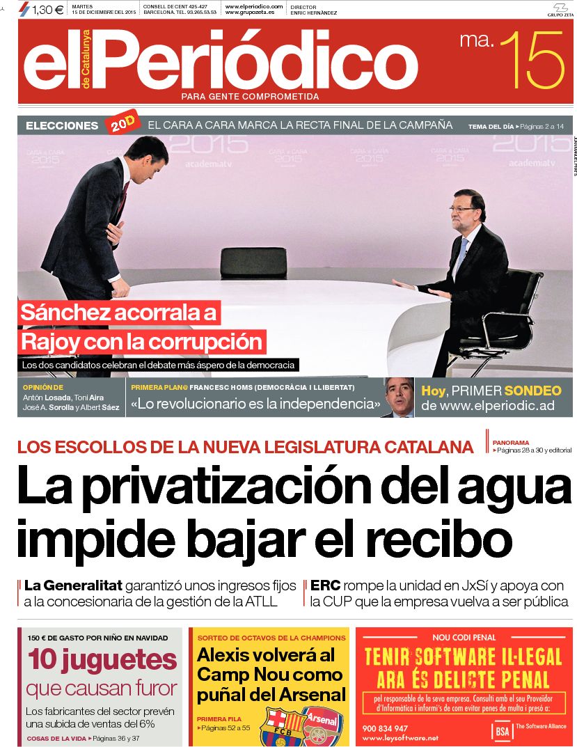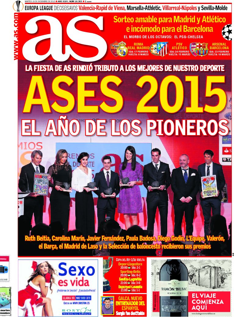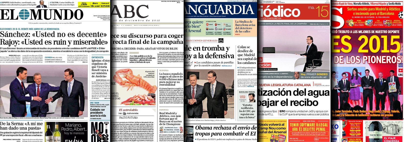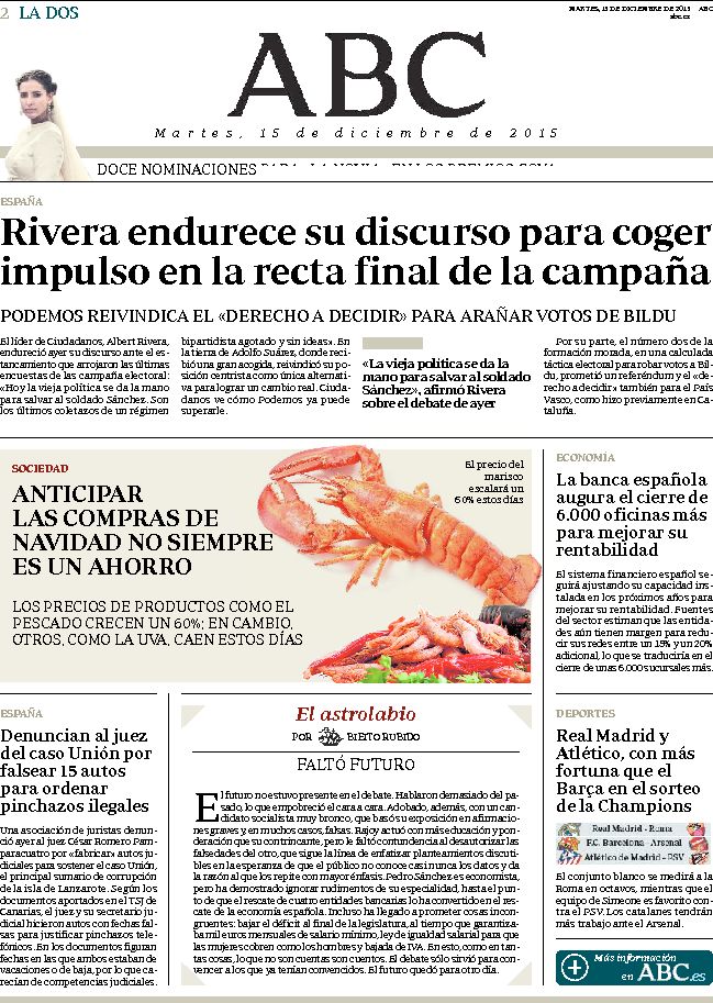 Portadas de los diarios ABC, As, Cinco Días, El Periódico y La Vanguardia.