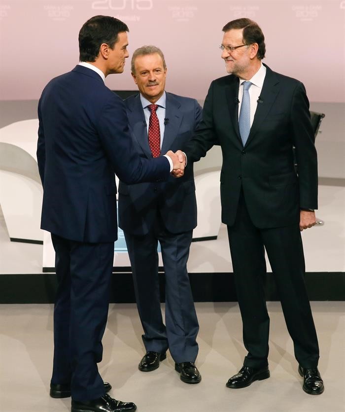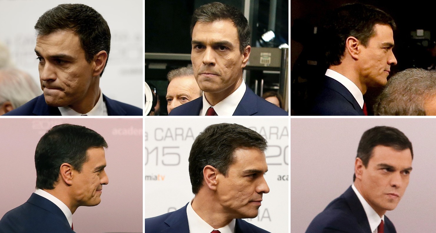 El candidato socialista Pedro Sánchez no podía disimular la enorme tensión acumulada, sobretodo en su madíbula, cuando llegó al debate con Mariano Rajoy. Tensión que salió a luz cuando el socialista adoptó una retórica muy agresiva, tabernaria en ocasiones, con insultos y descalificaciones personales al presidente del Gobierno.