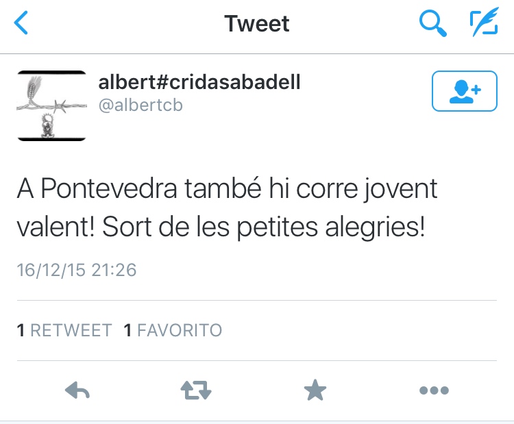 La junta de portavoces del Ayuntamiento de Sabadell ha sido el escenario este viernes de un duro encontronazo verbal entre el portavoz del PP, Esteban Gesa, y Míriam Ferràndiz, de "Crida per Sabadell", que es el nombre adoptado por la CUP en esa ciudad. Gesa pidió que el concejal de economía y miembro de la dicha "Crida" Albert Cos Boada retirase un mensaje en twitter lanzado tras la agresión a Rajoy y que todavía está en la cuenta del concejal. El texto celebraba el puñetazo a Rajoy: "En Pontevedra también corre juventud valiente. ¡Suerte de las pequeñas alegrías!". Gesa pedía también que el alcalde y los grupos municipales condenaran los hechos.