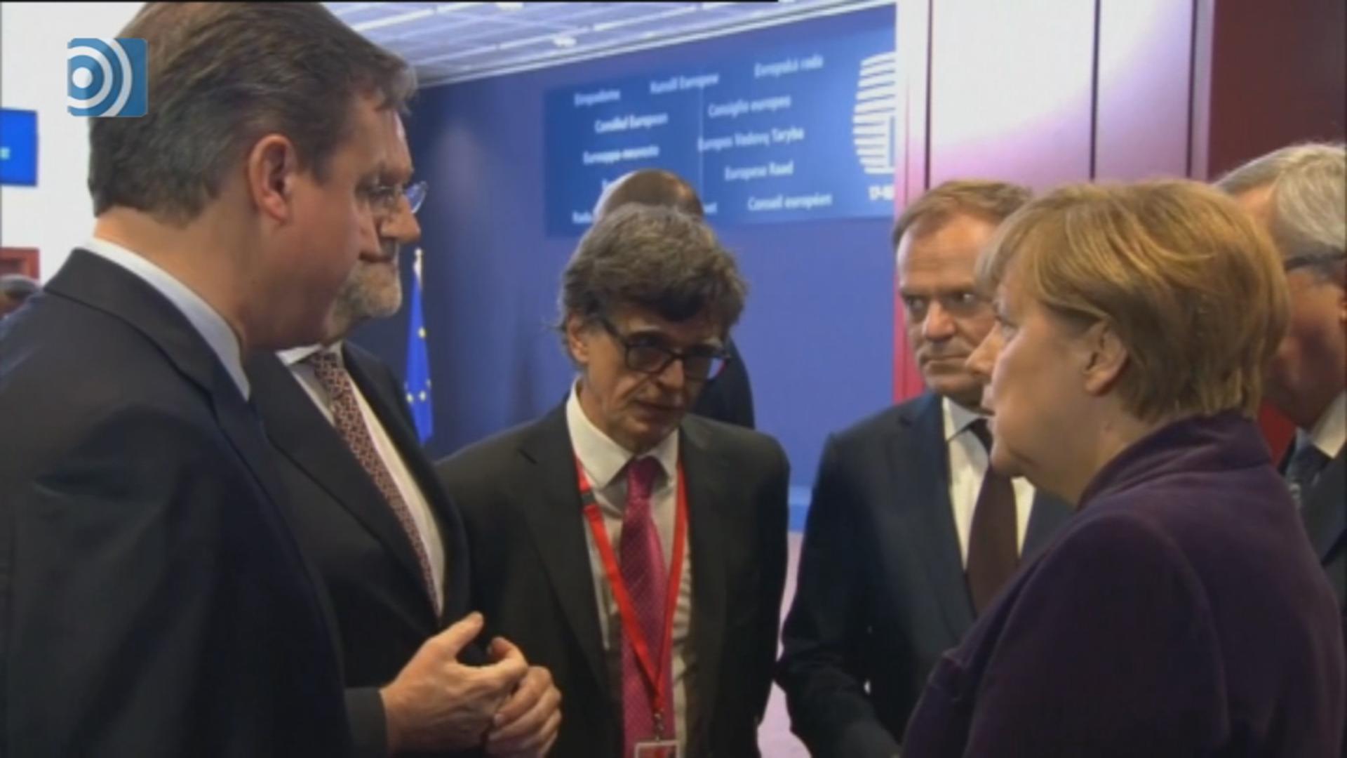 Una cámara ha captado el momento en el que Rajoy contaba su quiniela electoral a Merkerl y Cameron, entre otros. En ella asegura que segundos serán el PSOE o Podemos y cuartos Ciudadanos.