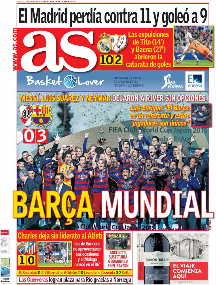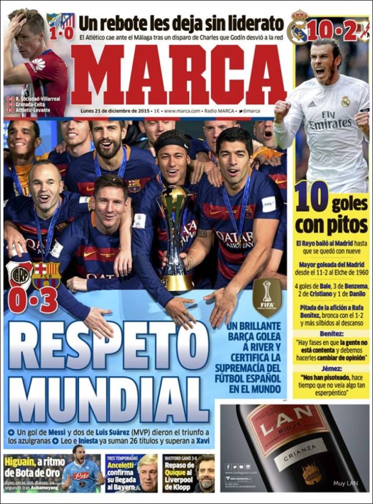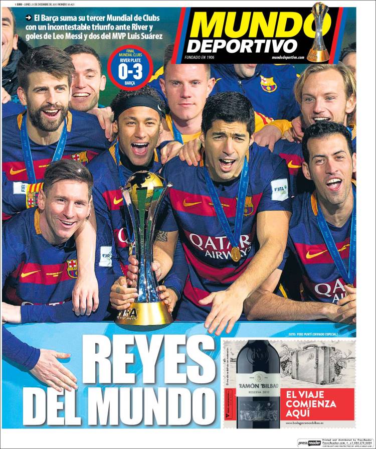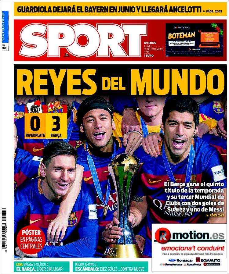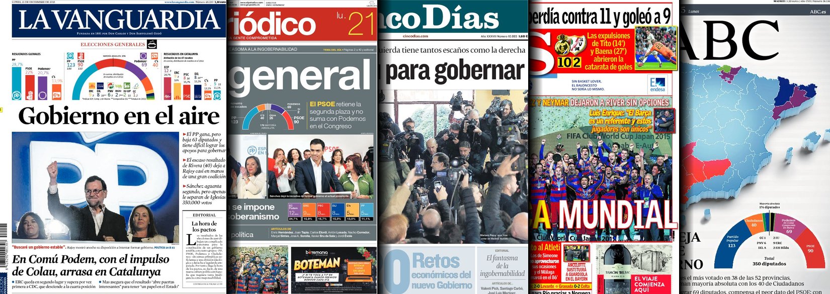 Portadas de los diarios El Mundo, El País, ABC, La Razón, La Vanguardia, El Periódico, Cinco Días, El Economista, Expansión, Marca, As, Mundo Deportivo y Sport.