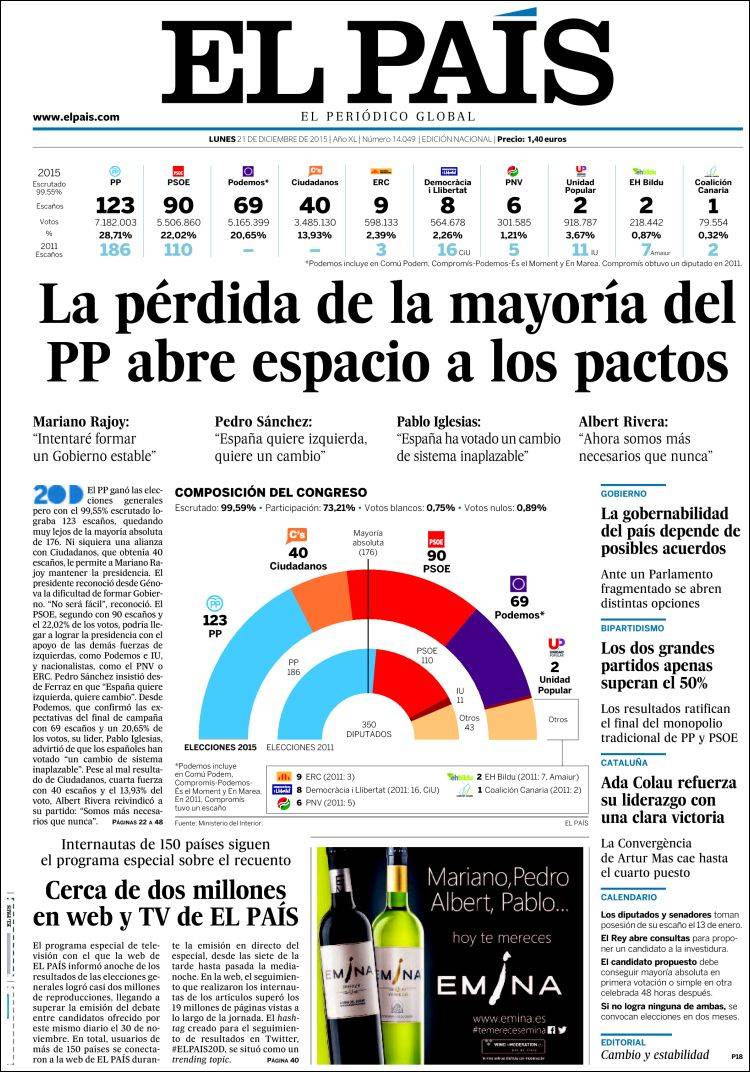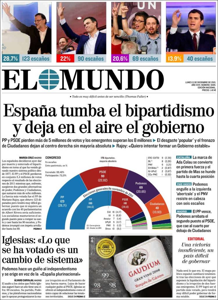 "España deja en el aire su gobierno"