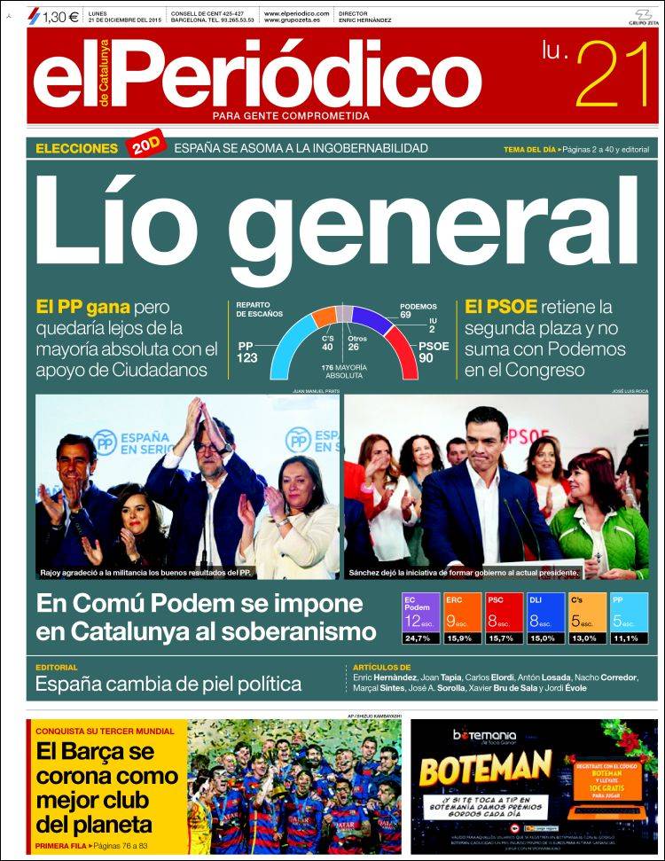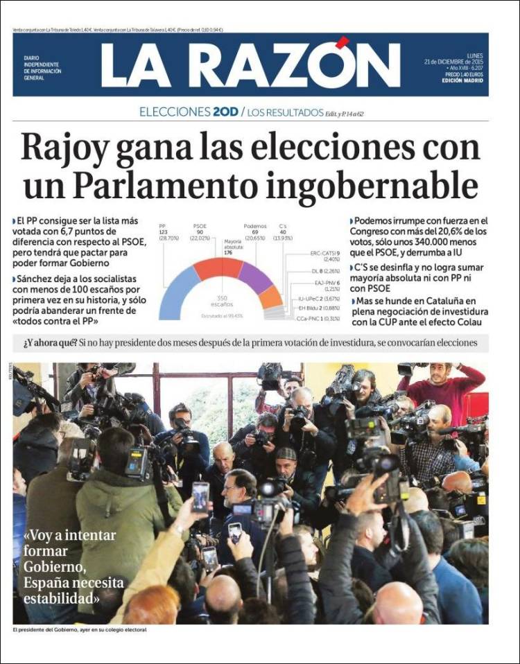 "Rajoy gana las elecciones con un Parlamento ingobernable"
