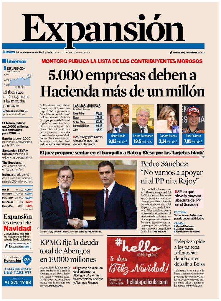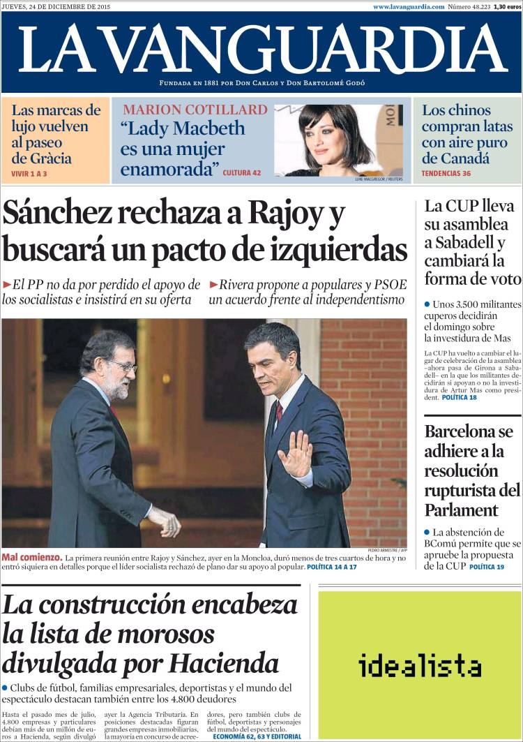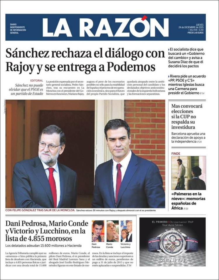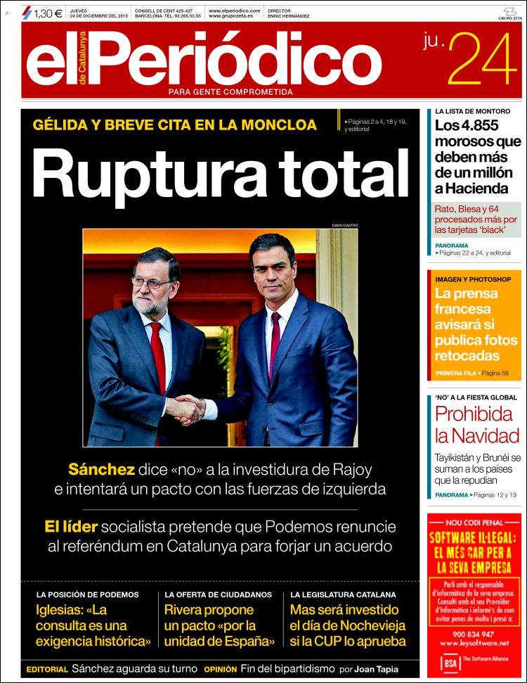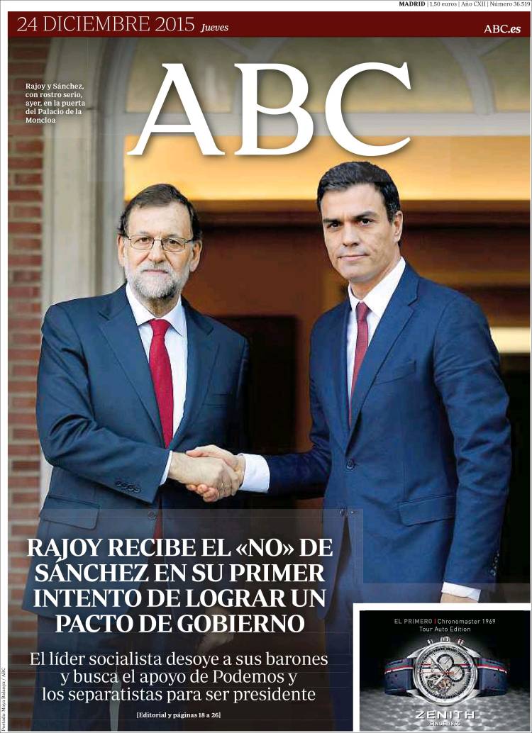 "Sánchez da un portazo a Rajoy y buscará mayoría de izquierda"