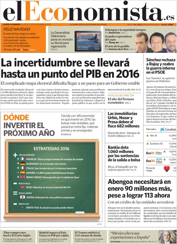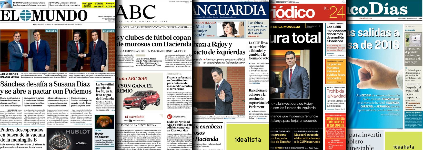 Portadas de los diarios El Mundo, El País, ABC, La Razón, La Vanguardia, El Periódico, Cinco Días, El Economista, Expansión, As, Mundo Deportivo y Sport.
