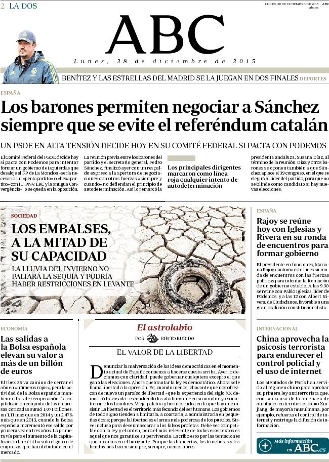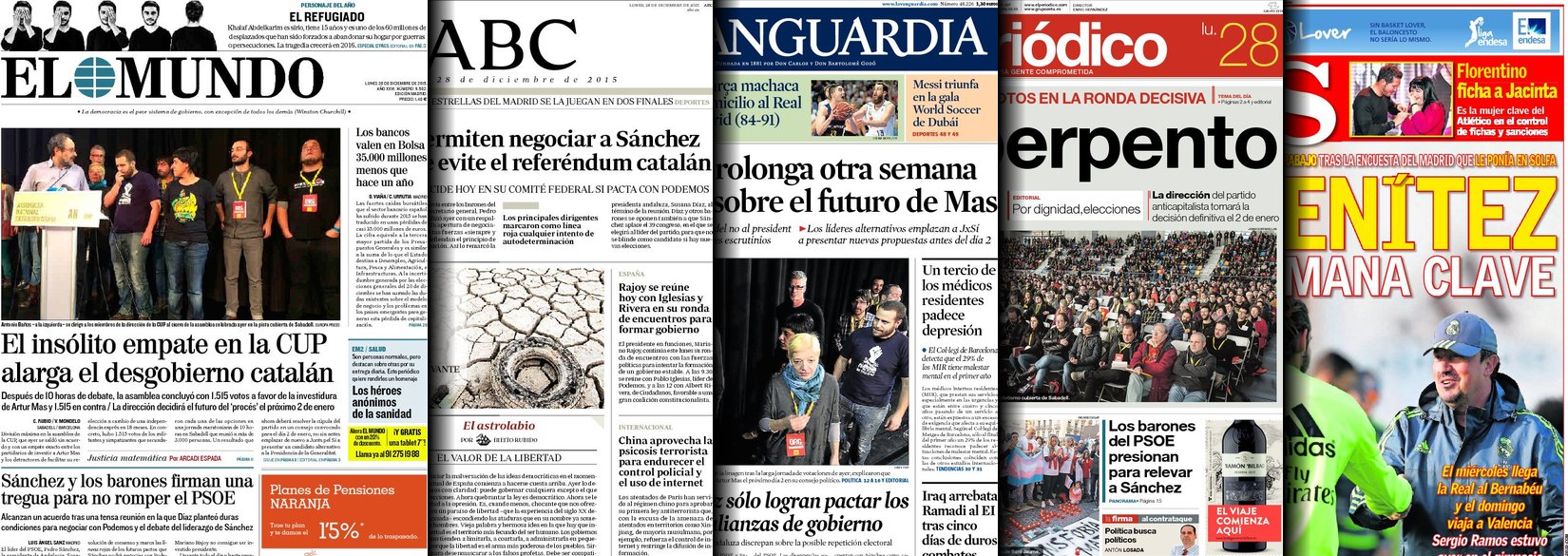 Portadas de los diarios ABC, As, El Periódico y La Vanguardia.