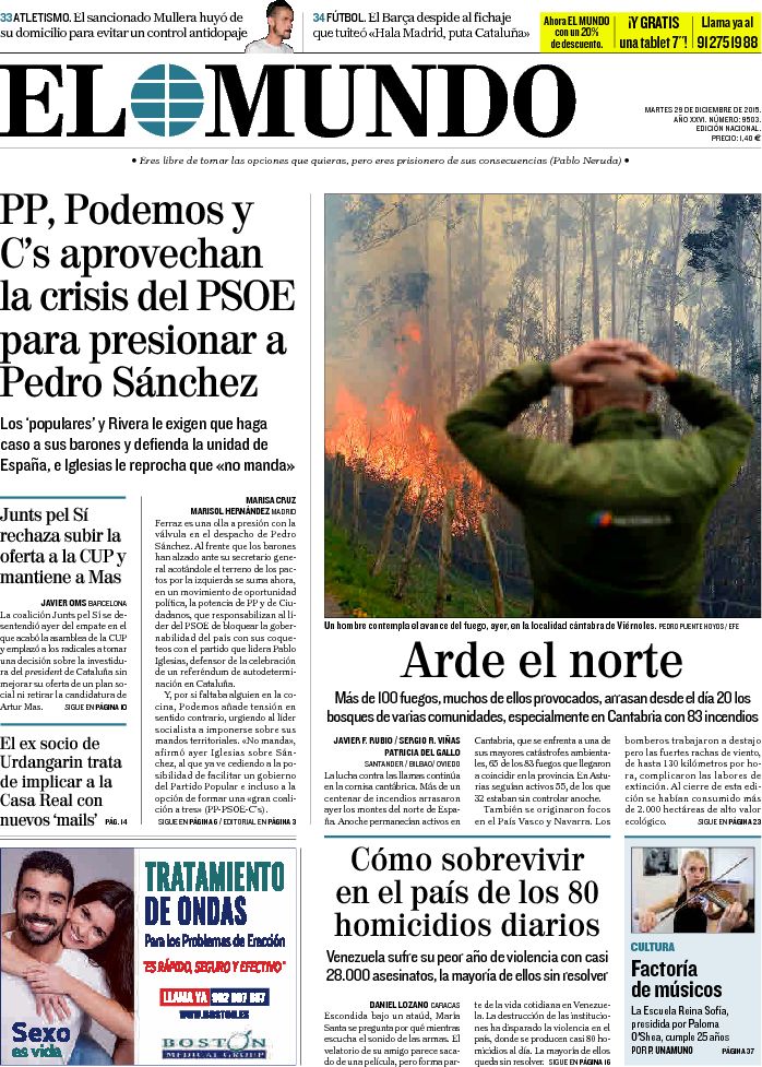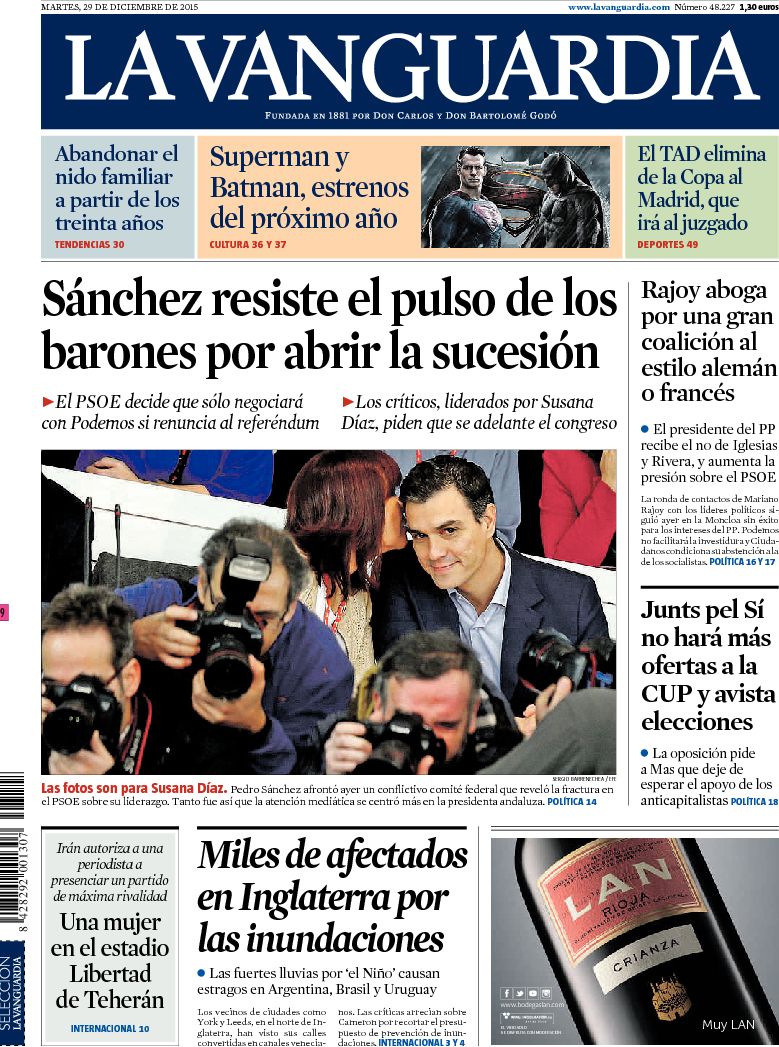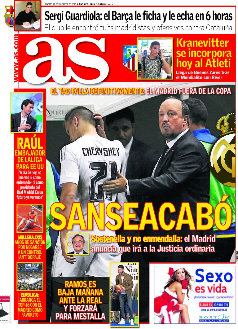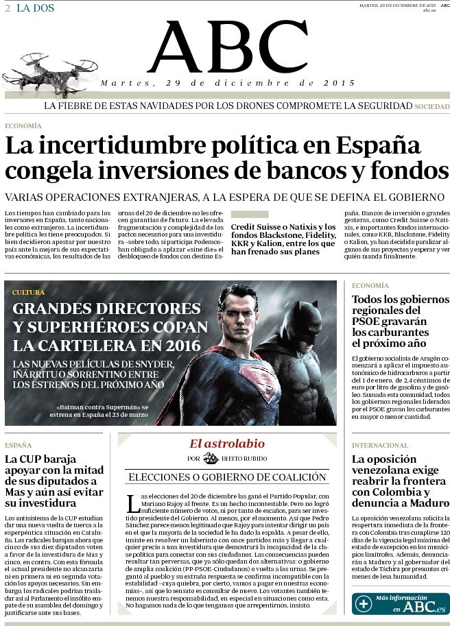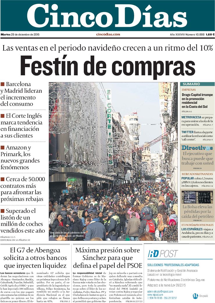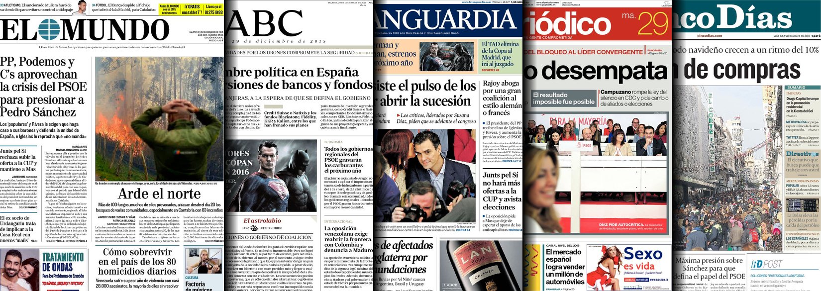 Portadas de los diarios ABC, As, Cinco Días, El Periódico y La Vanguardia.