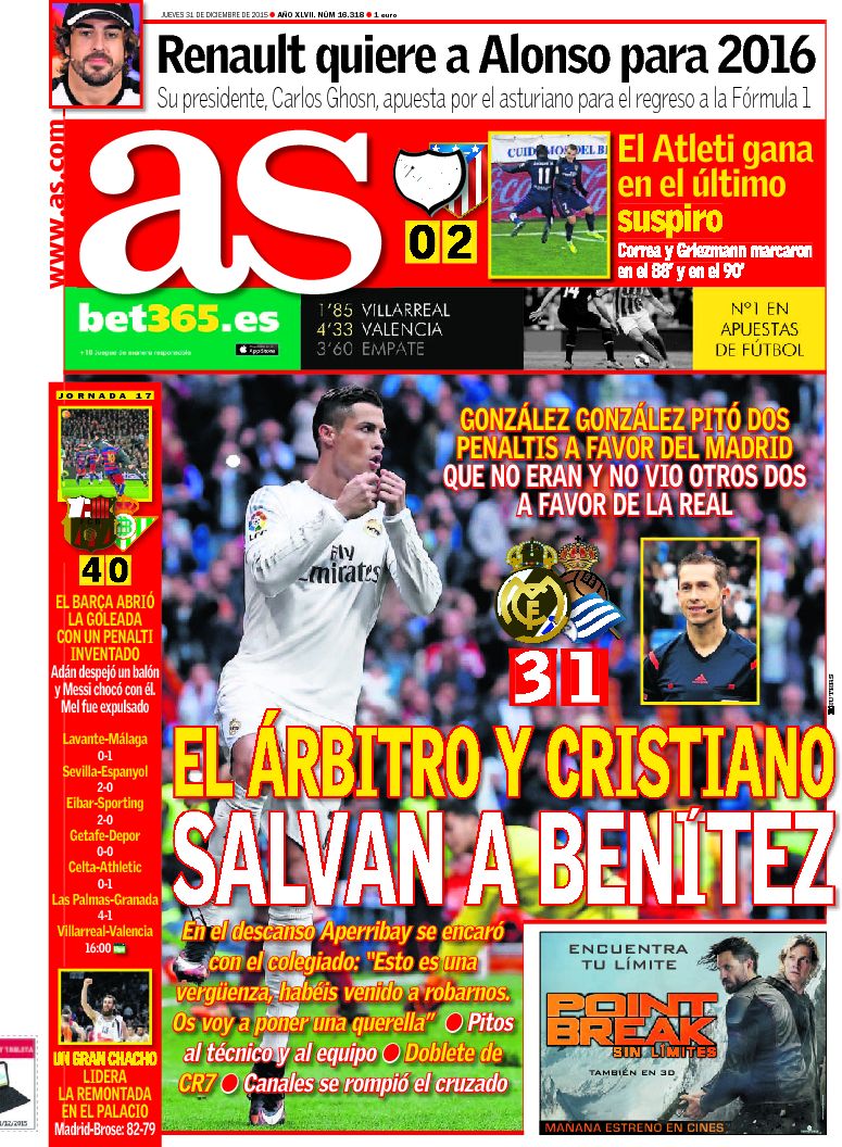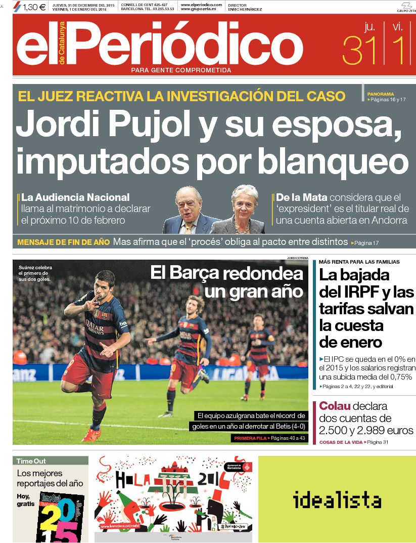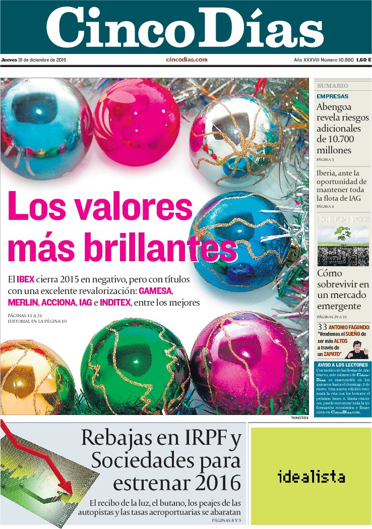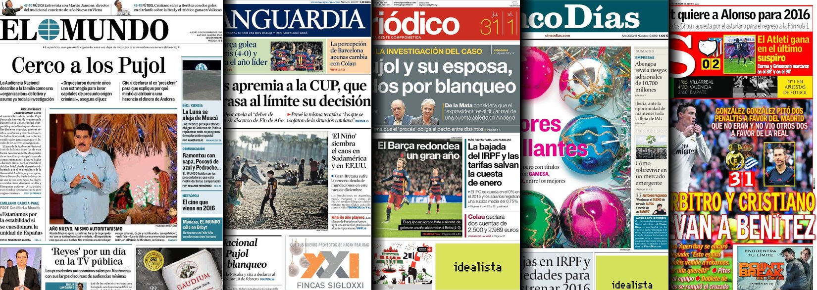 Portadas de los diarios ABC, As, Cinco Días, El Periódico y La Vanguardia.