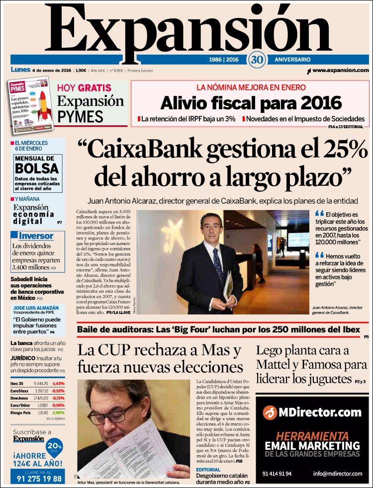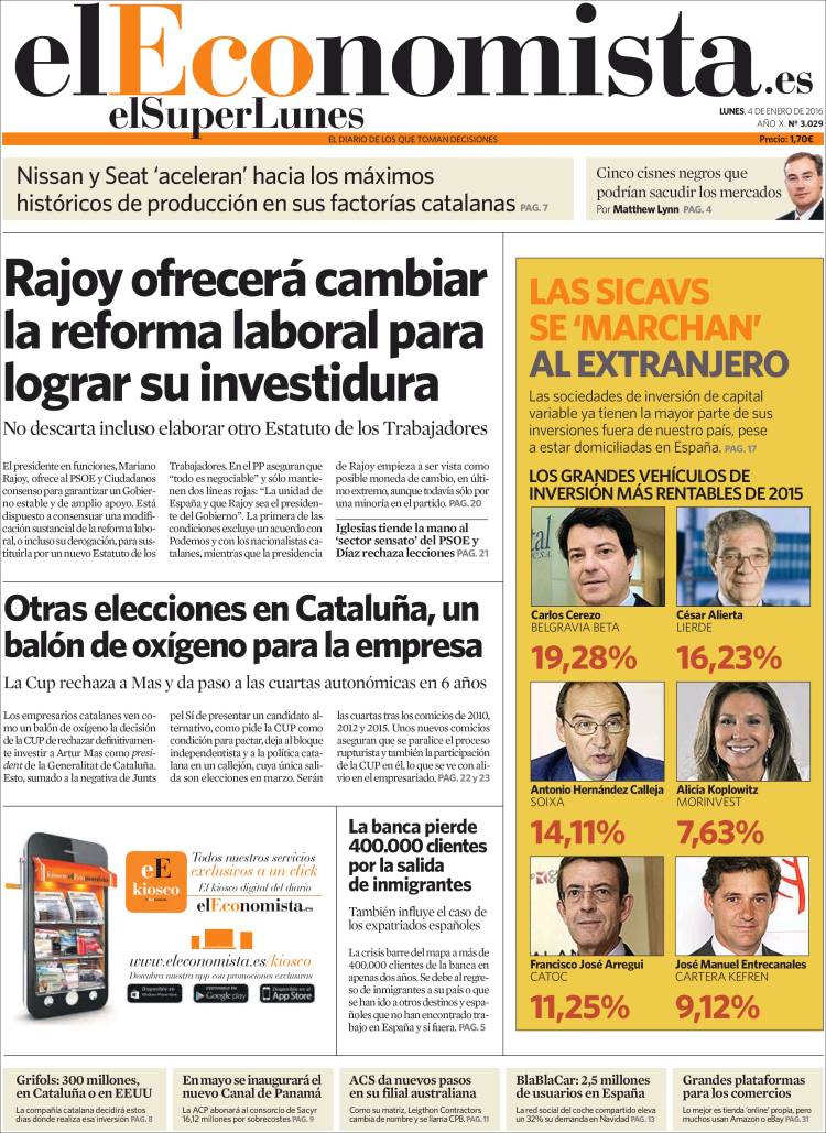 Portadas de los diarios El Mundo, El País, ABC, La Razón, La Vanguardia, El Periódico, Cinco Días, El Economista, Expansión, As, Mundo Deportivo y Sport.
