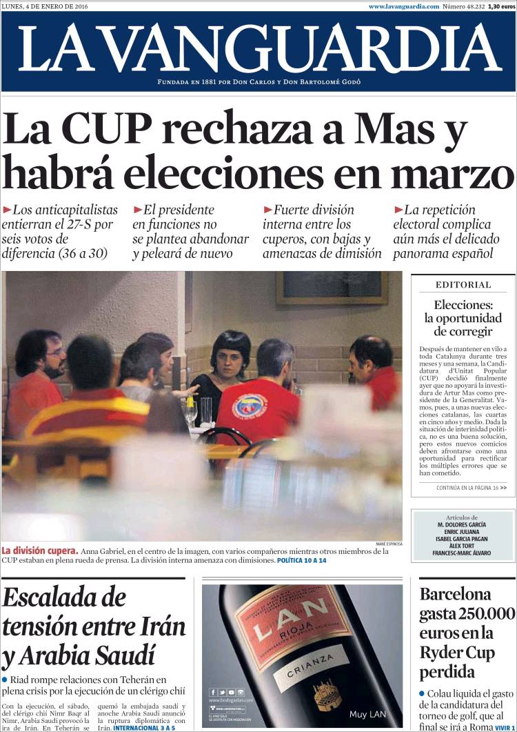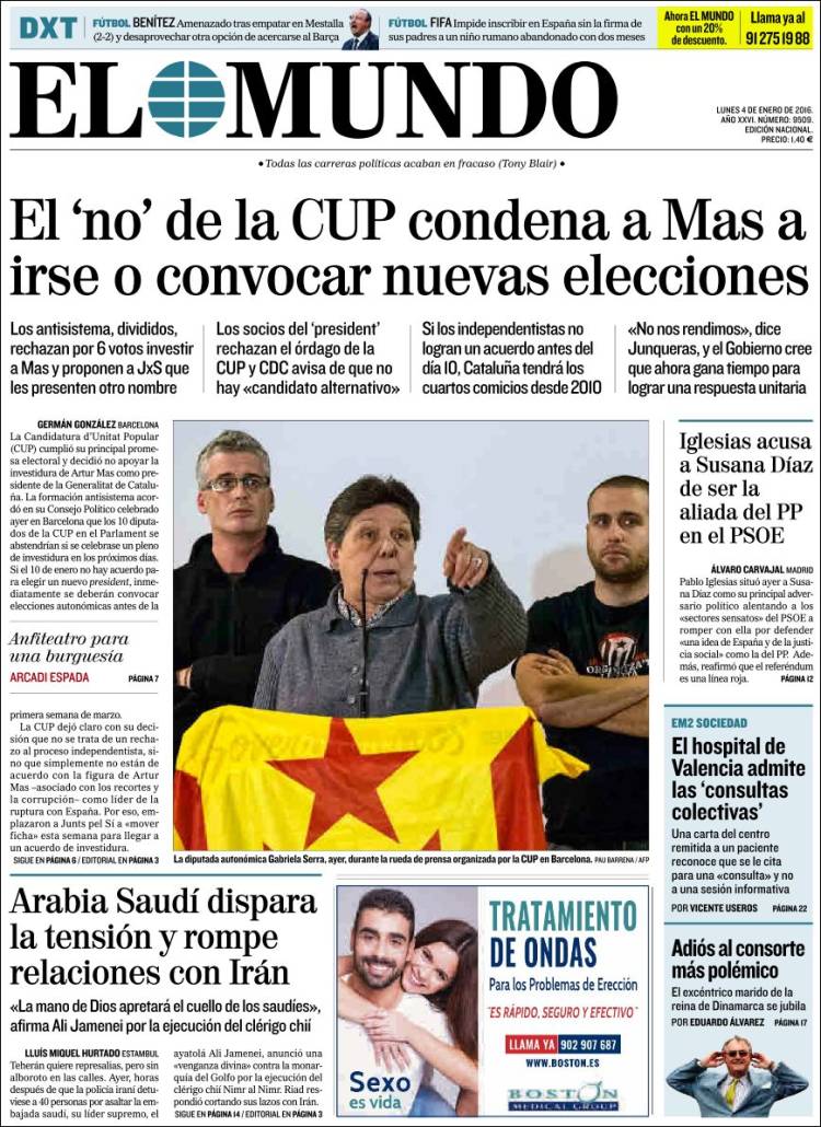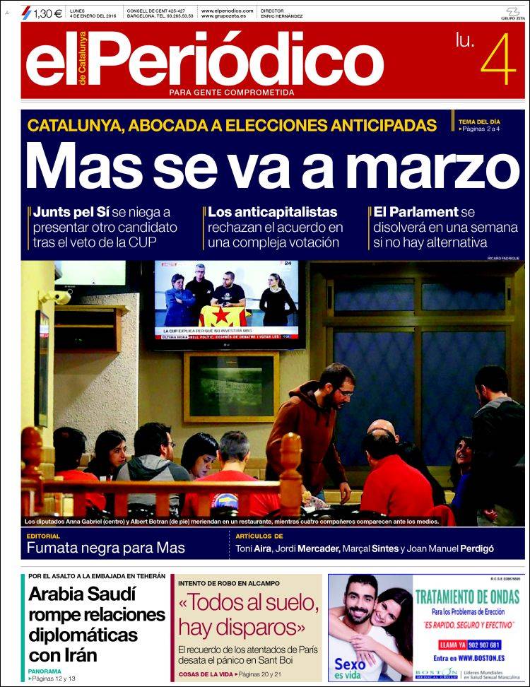 "El 'no' de la CUP condena a Mas a irse o convocar nuevas elecciones"