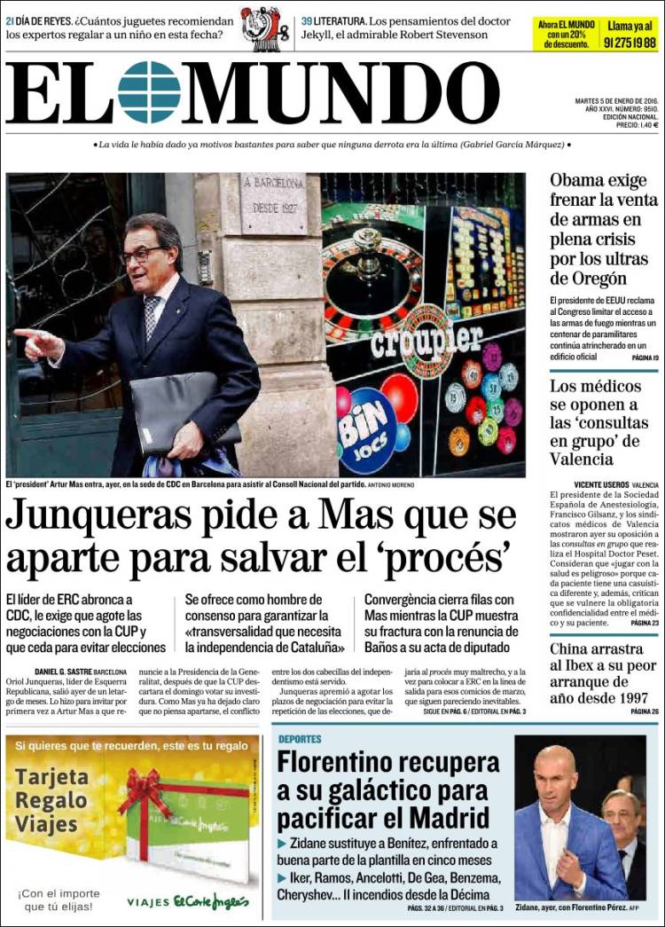 "Junqueras se postula como el líder soberanista mientras Mas prepara su candidatura para marzo"