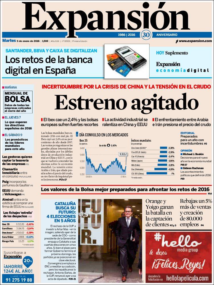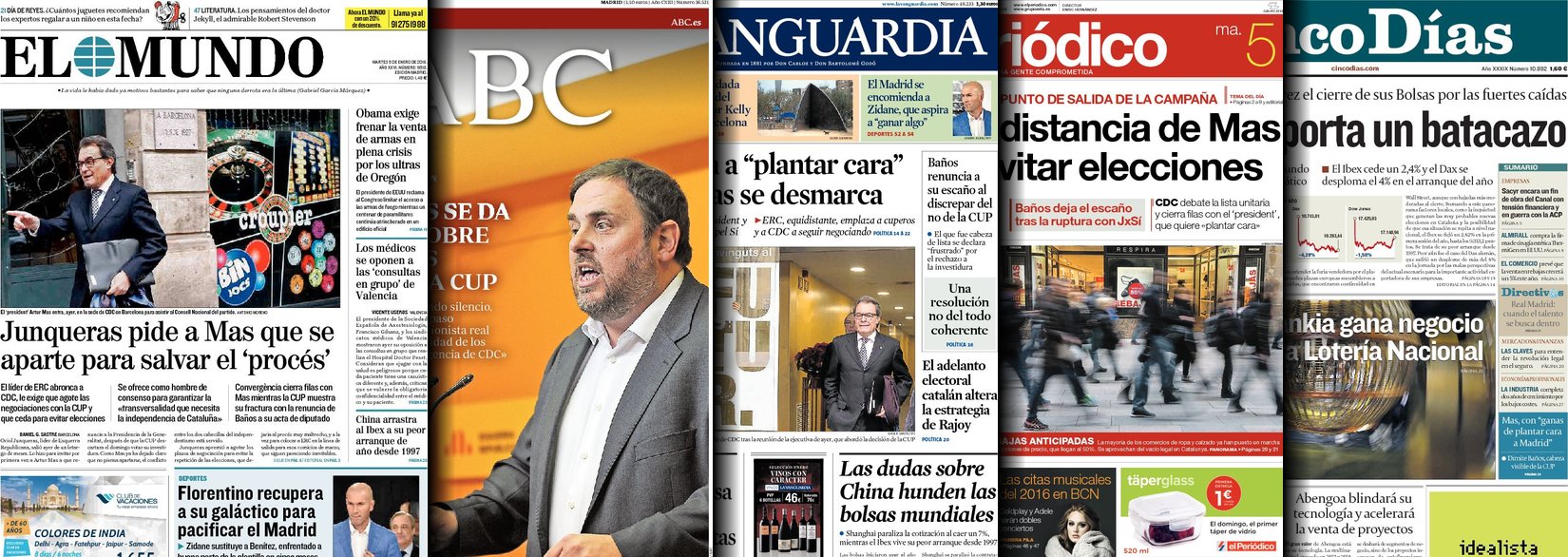 Portadas de los diarios El Mundo, El País, ABC, La Razón, La Vanguardia, El Periódico, Cinco Días, El Economista, Expansión, As, Mundo Deportivo y Sport.