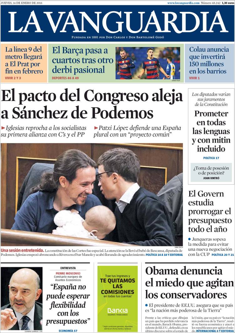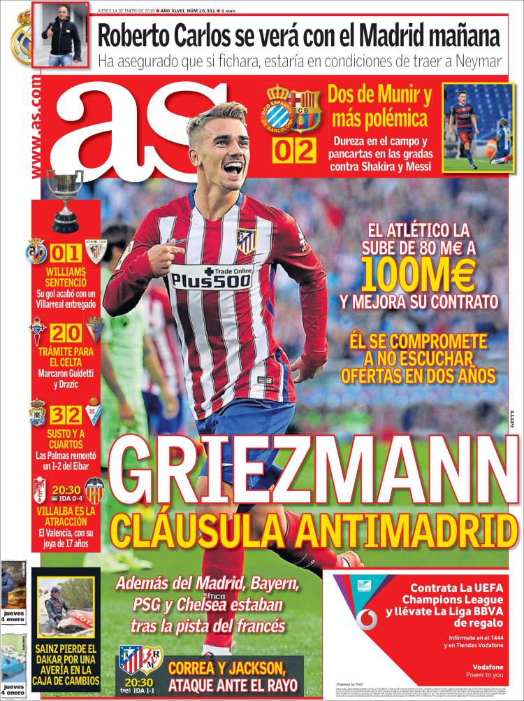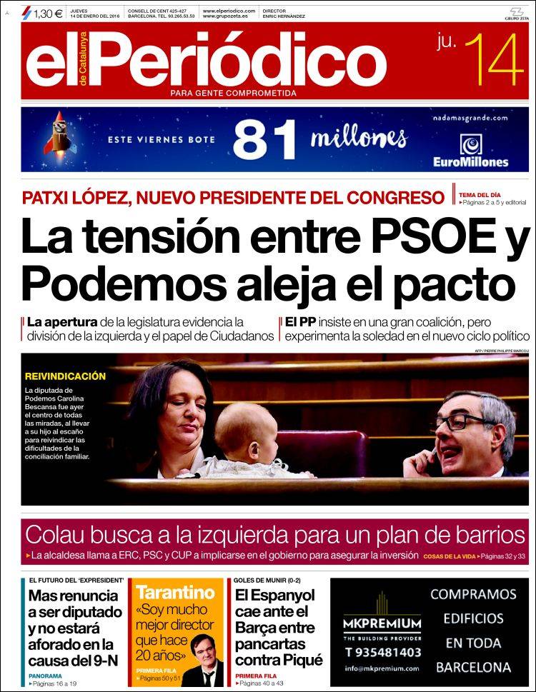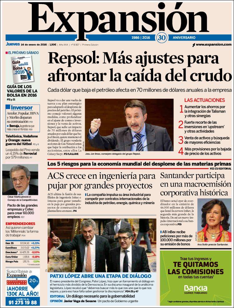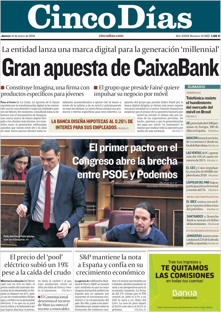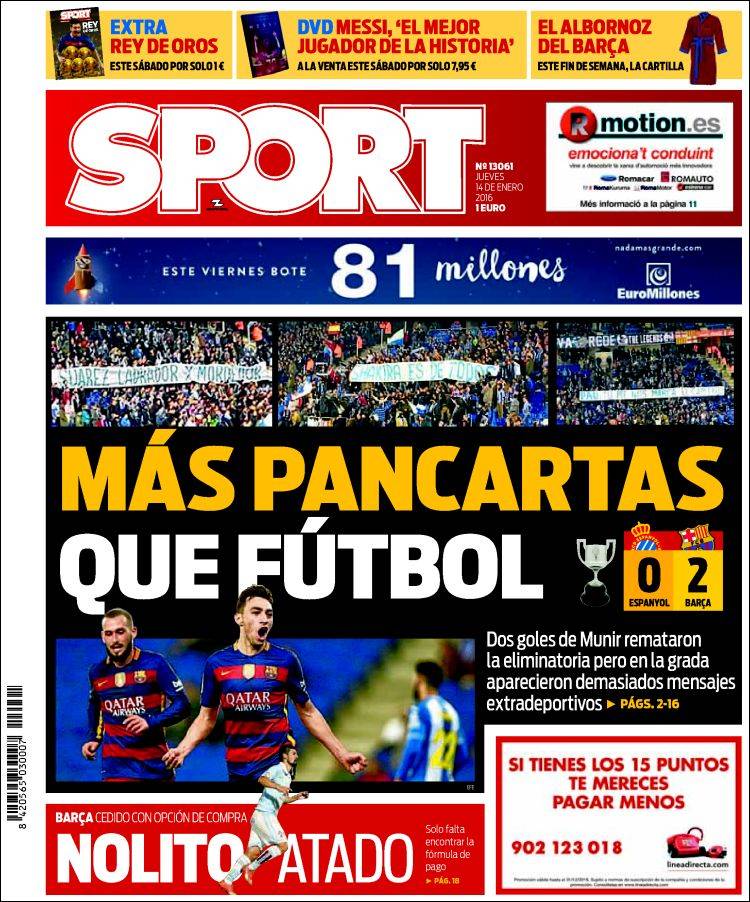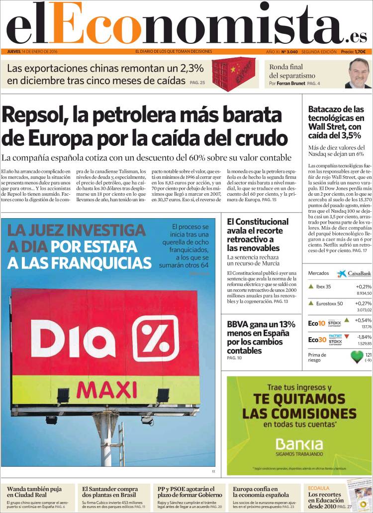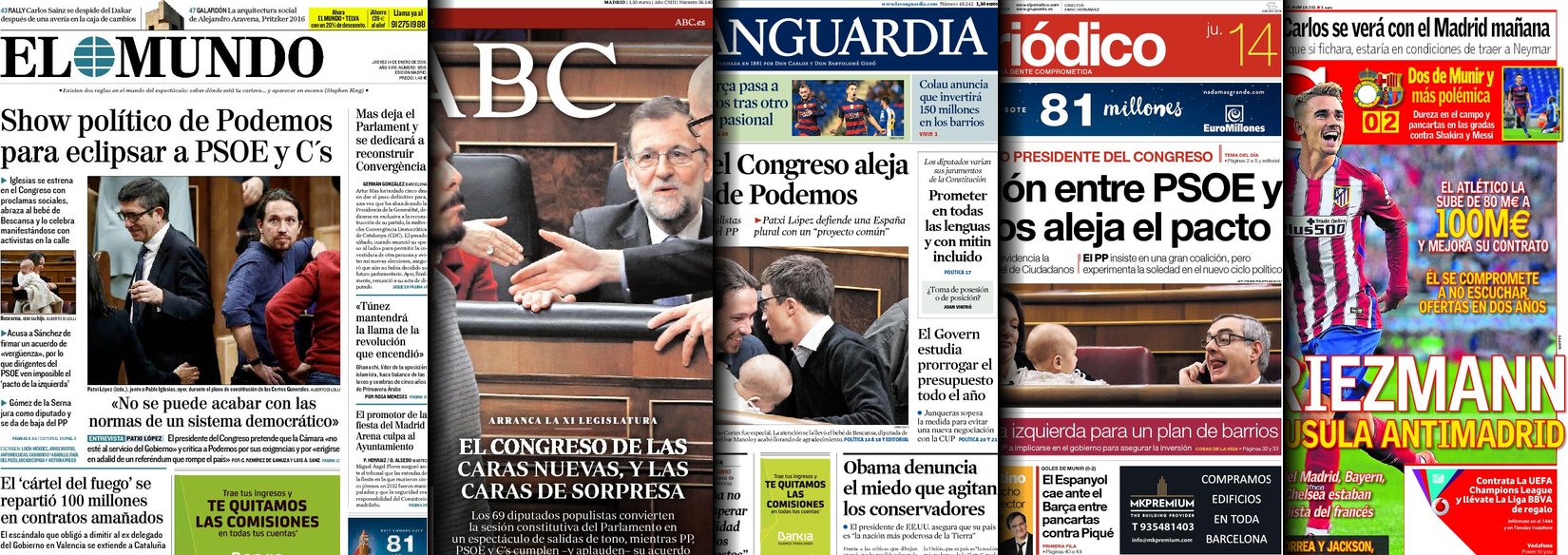 Portadas de los diarios El Mundo, El País, ABC, La Razón, La Vanguardia, El Periódico, Cinco Días, El Economista, Expansión, As, Mundo Deportivo y Sport.Portadas de los diarios ABC, As, El Periódico y La Vanguardia.