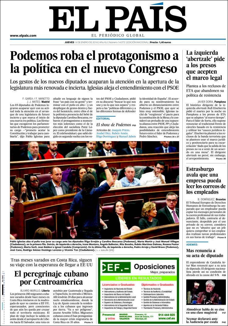 "Podemos roba el protagonismo a la política en el nuevo Congreso"