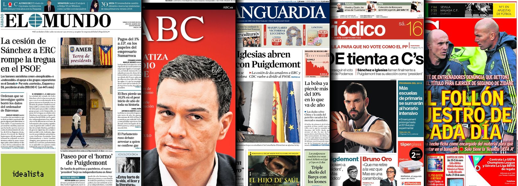 Portadas de los diarios ABC, As, El Periódico y La Vanguardia.