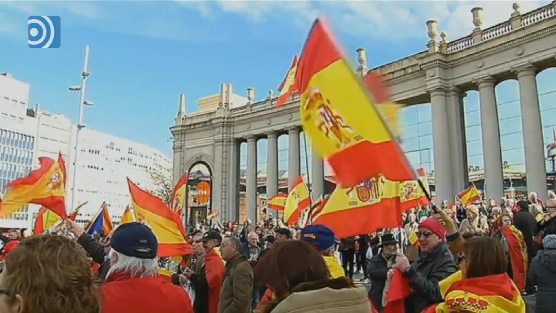 Un millar de personas se ha concentrado este domingo en la plaza de España de Barcelona para defender la unidad nacional y denunciar la deriva radical del proceso independentista.