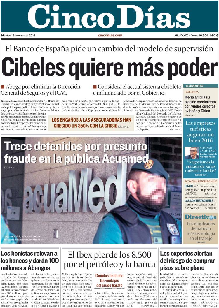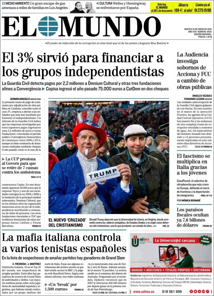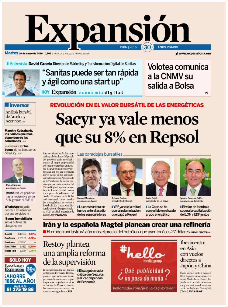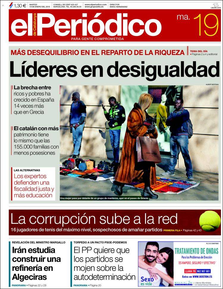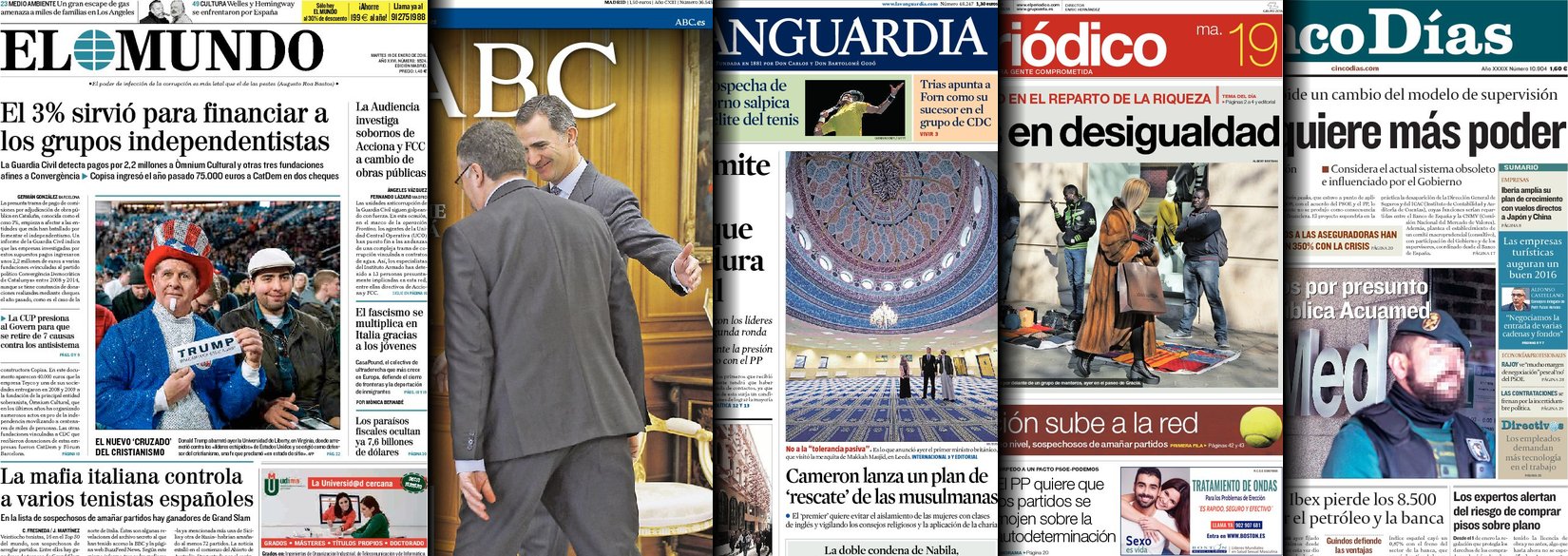 Portadas de los diarios El Mundo, El País, ABC, La Razón, La Vanguardia, El Periódico, Cinco Días, El Economista, Expansión, Marca, As, Mundo Deportivo y Sport.