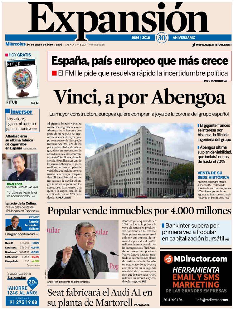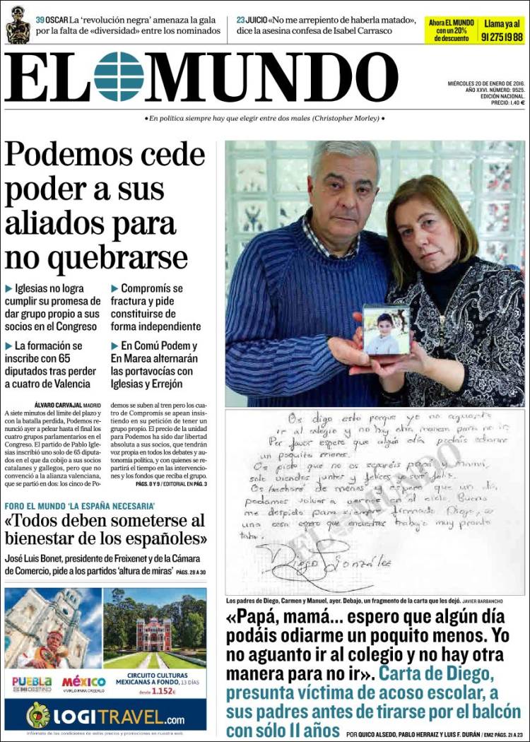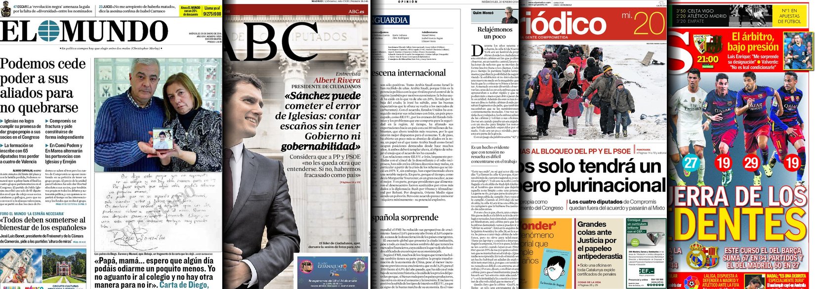 Portadas de los diarios El Mundo, El País, ABC, La Razón, La Vanguardia, El Periódico, Cinco Días, El Economista, Expansión, Marca, As, Mundo Deportivo y Sport.