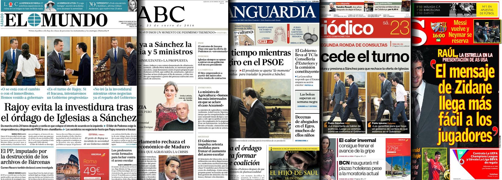Portadas de los diarios ABC, As, El Periódico y La Vanguardia.