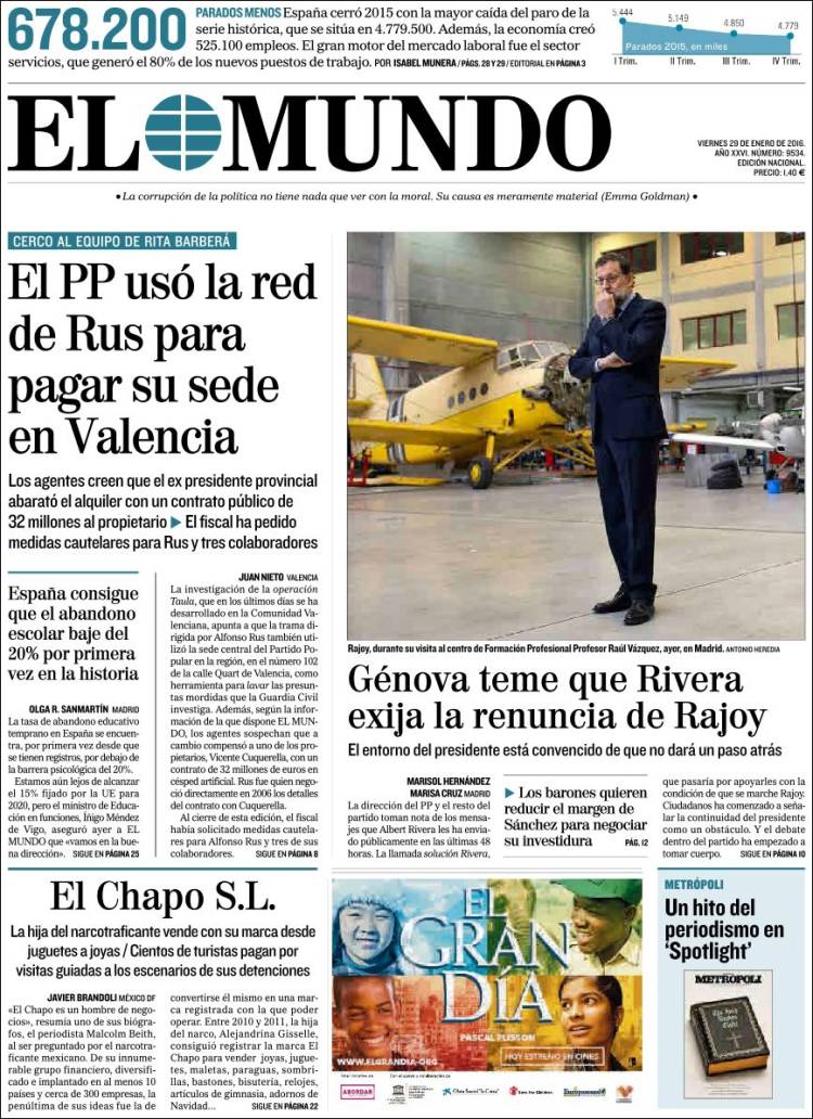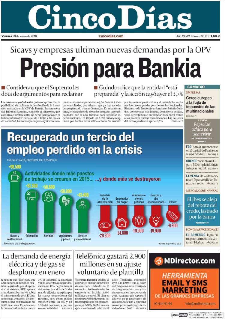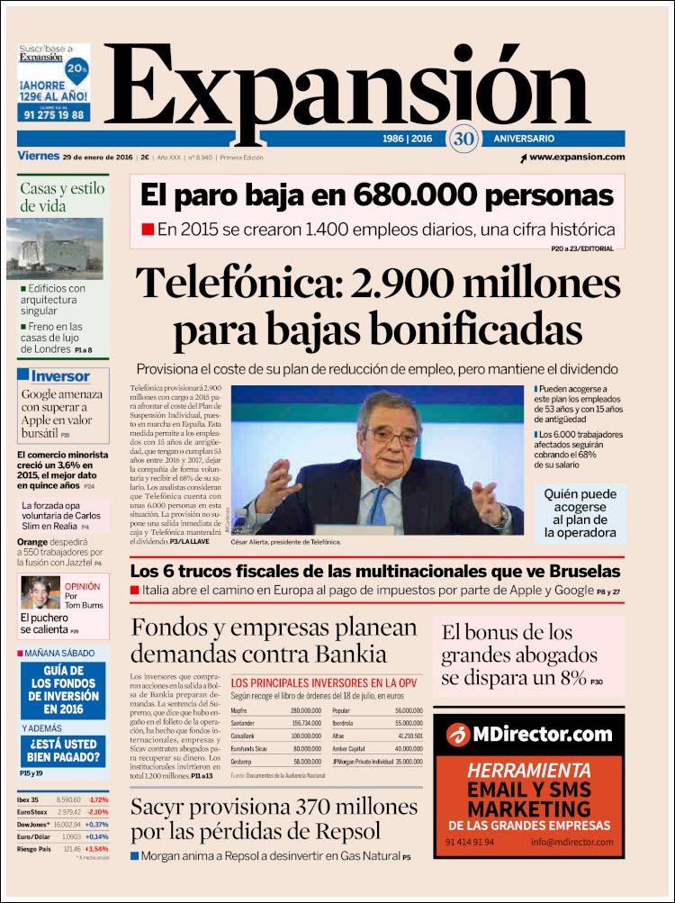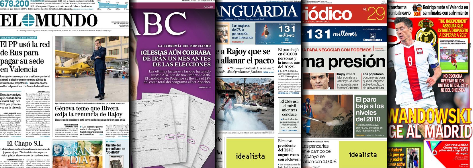 Portadas de los diarios El Mundo, El País, ABC, La Razón, La Vanguardia, El Periódico, Cinco Días, El Economista, Expansión, Marca, As, Mundo Deportivo y Sport.