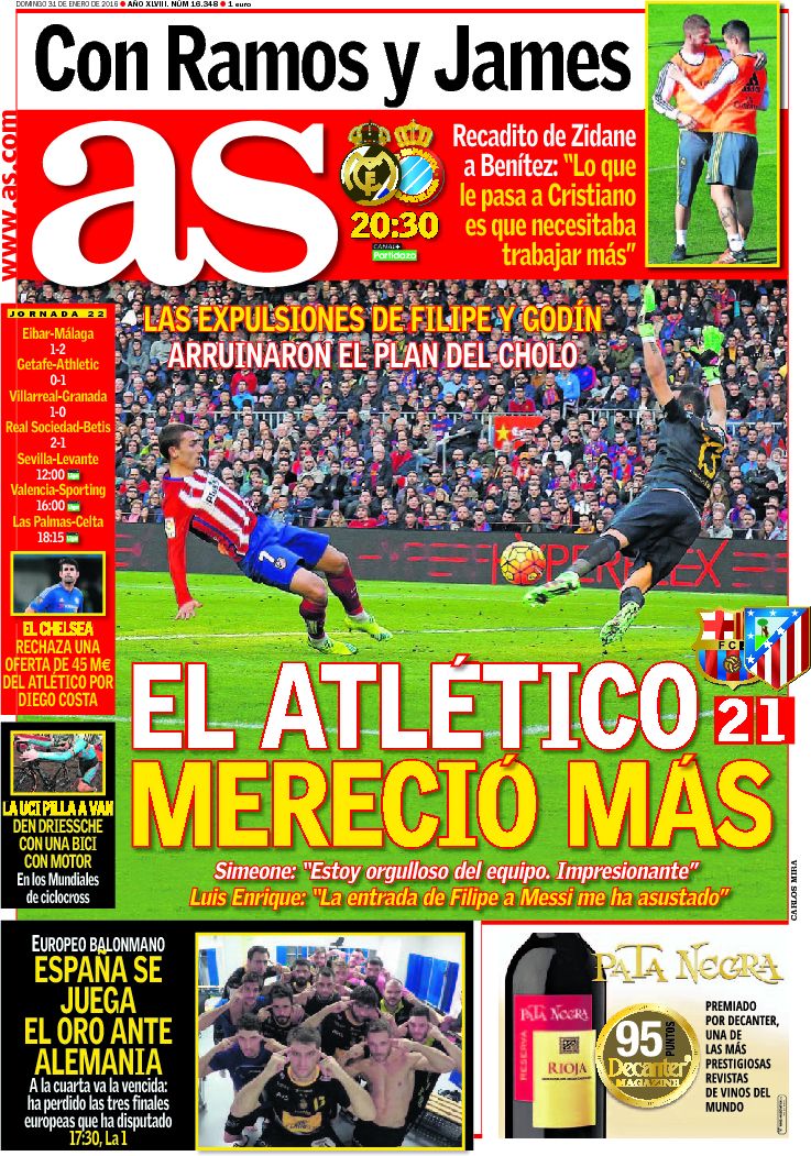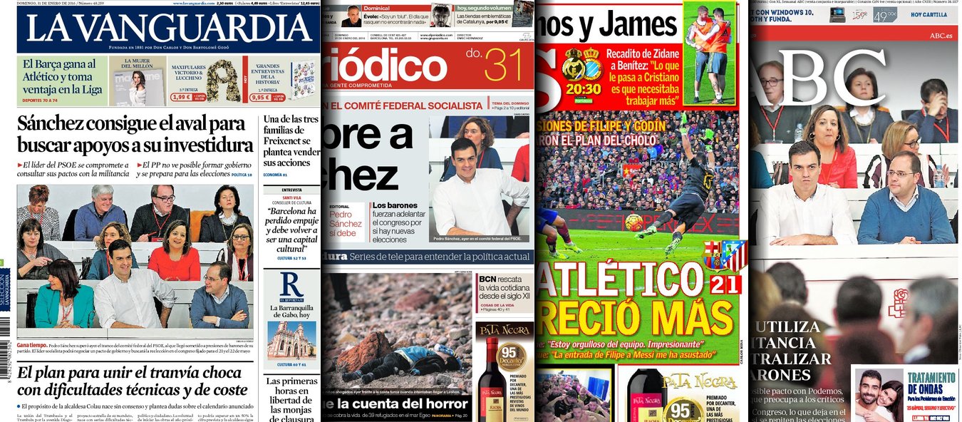 Portadas de los diarios ABC, As, El Periódico y La Vanguardia.