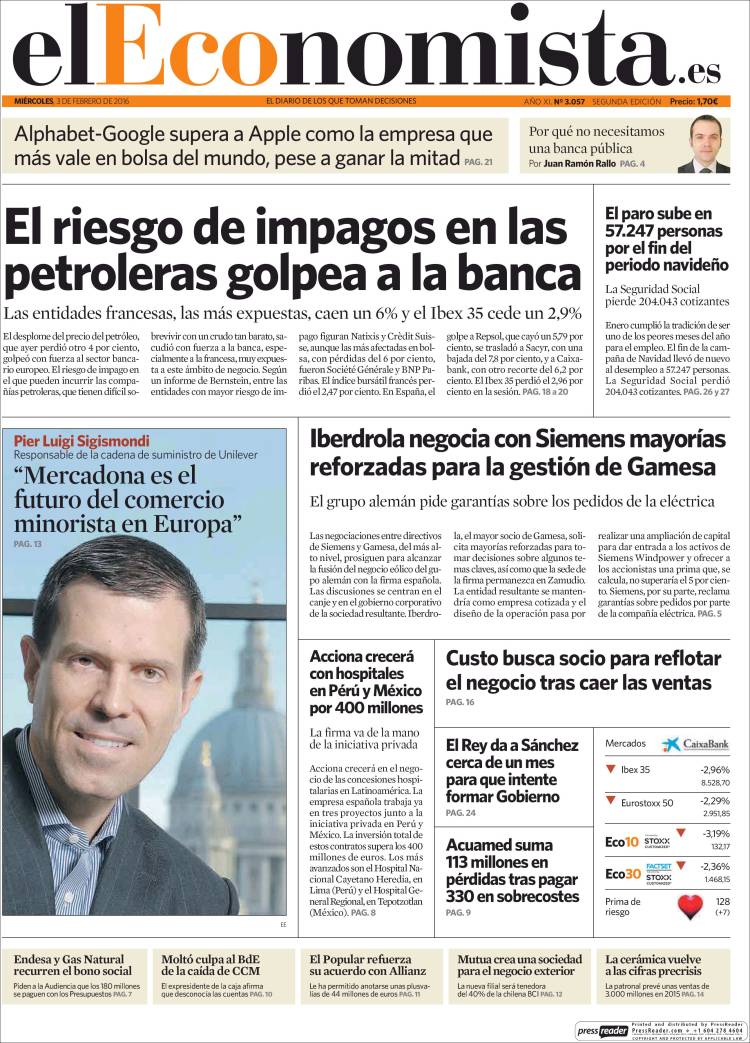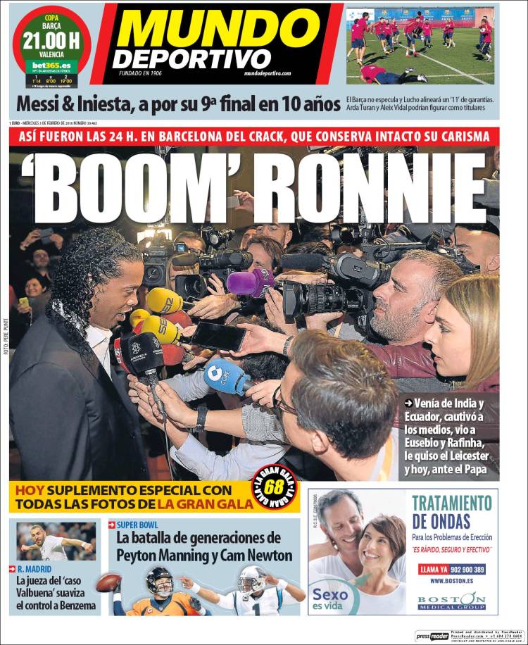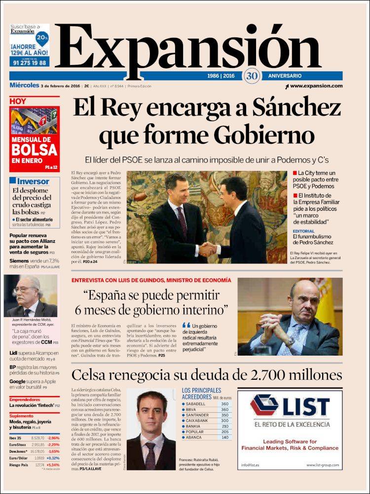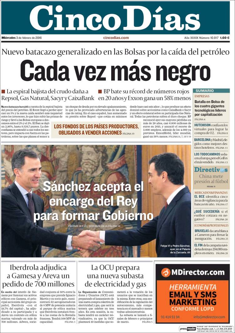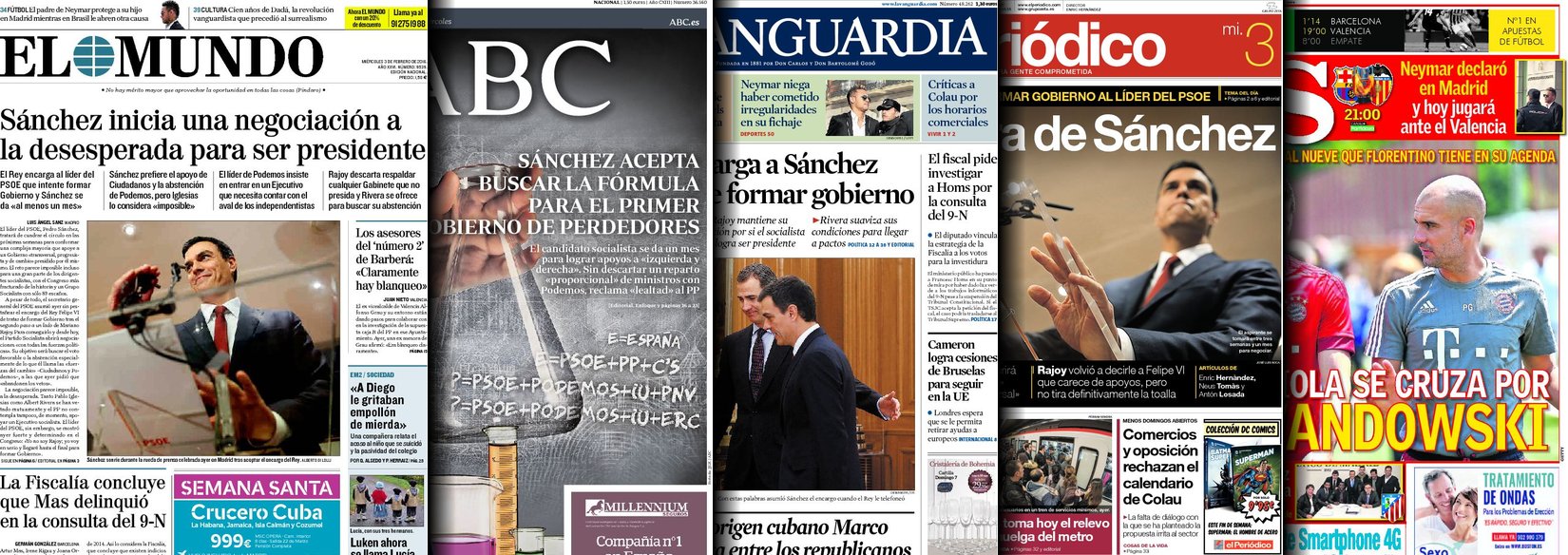 Portadas de los diarios El Mundo, El País, ABC, La Razón, La Vanguardia, El Periódico, Cinco Días, El Economista, Expansión, Marca, As, Mundo Deportivo y Sport.