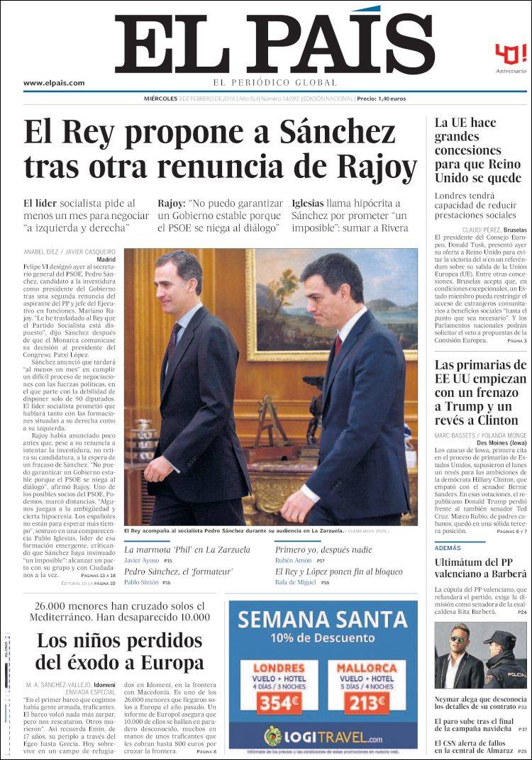 "Sánchez acepta buscar la fórmula para el primer gobierno de perdedores"