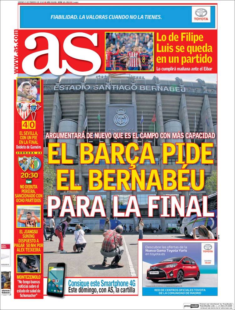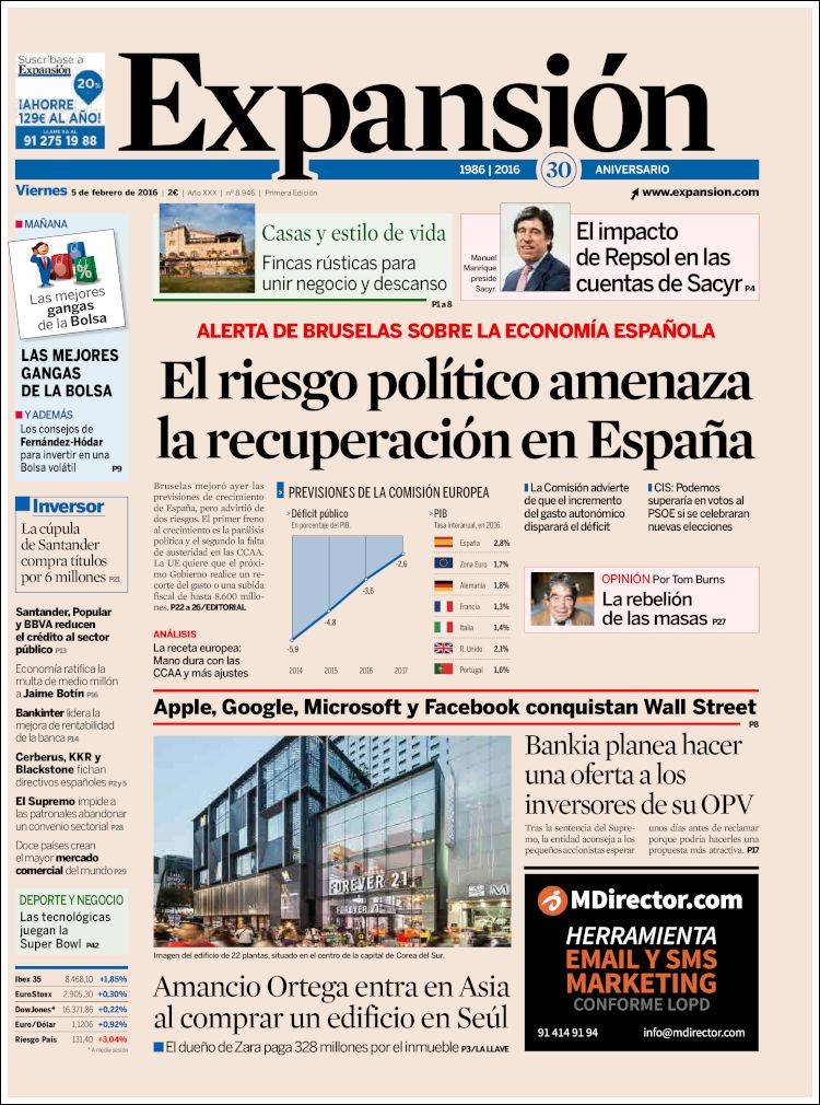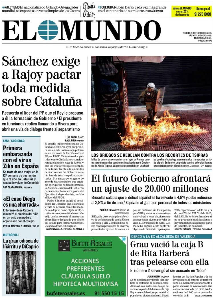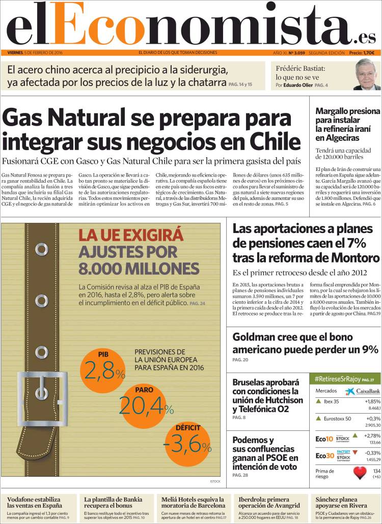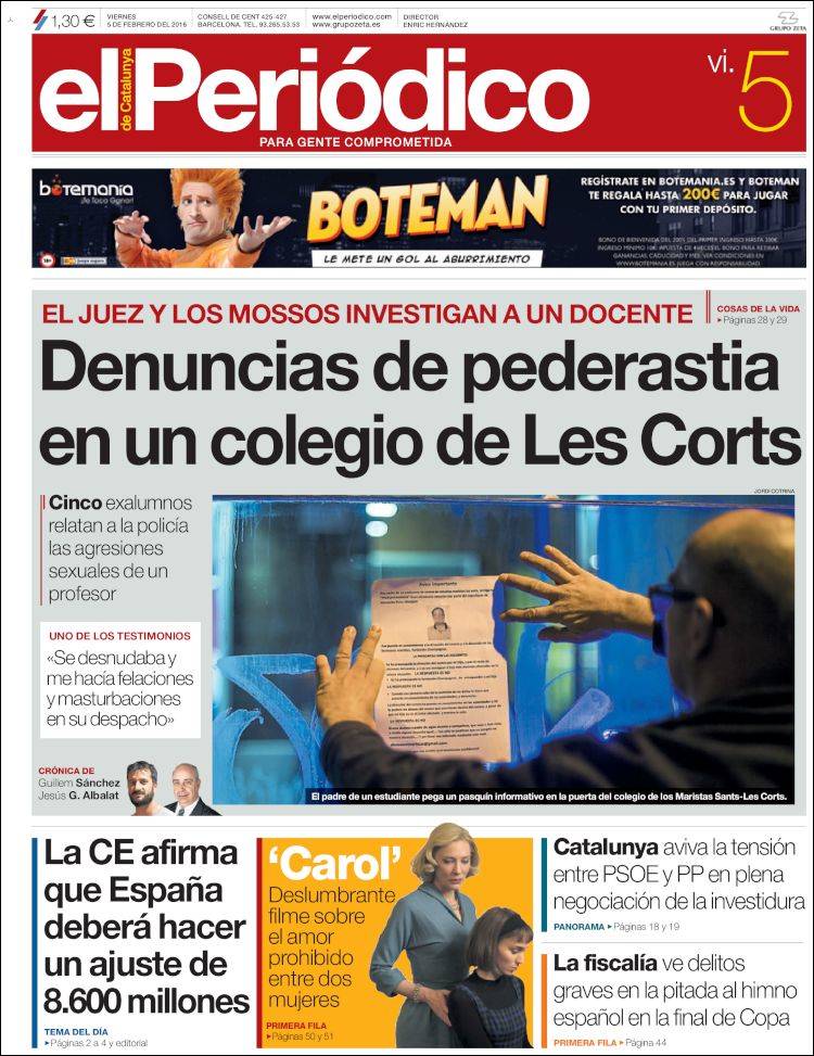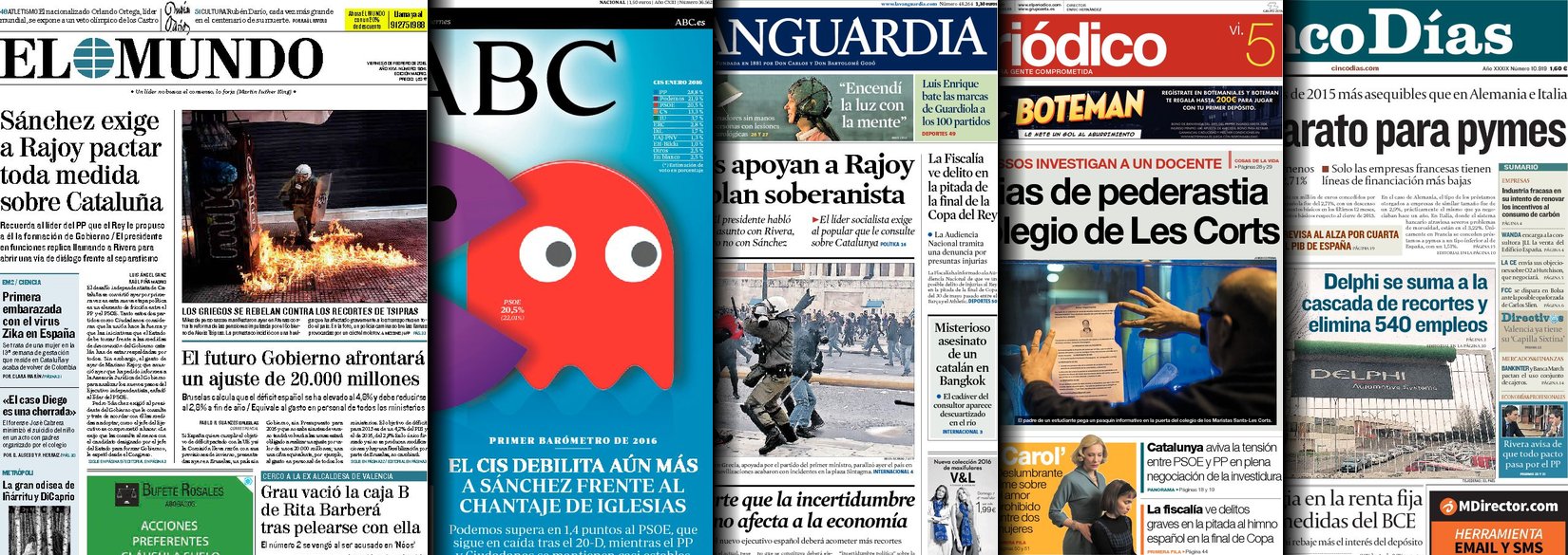 Portadas de los diarios El Mundo, El País, ABC, La Razón, La Vanguardia, El Periódico, Cinco Días, El Economista, Expansión, Marca, As, Mundo Deportivo y Sport.