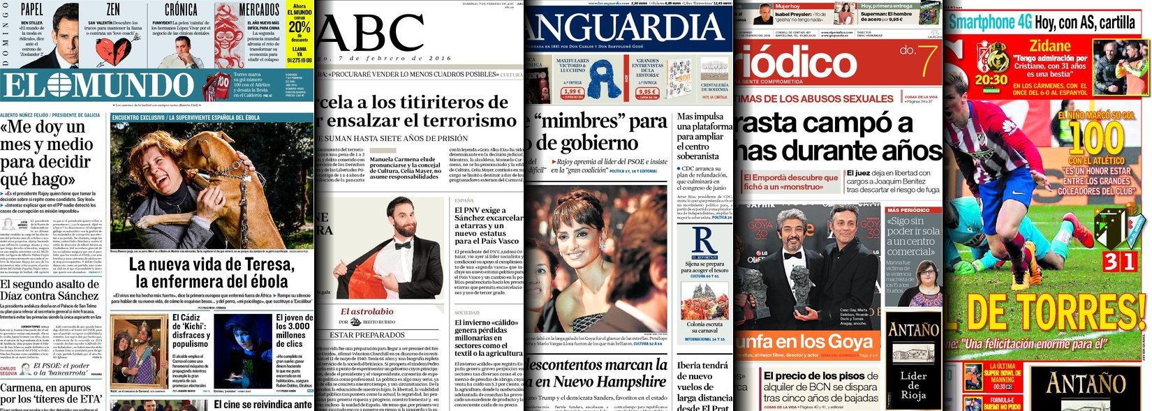 Portadas de los diarios ABC, As, El Periódico y La Vanguardia.