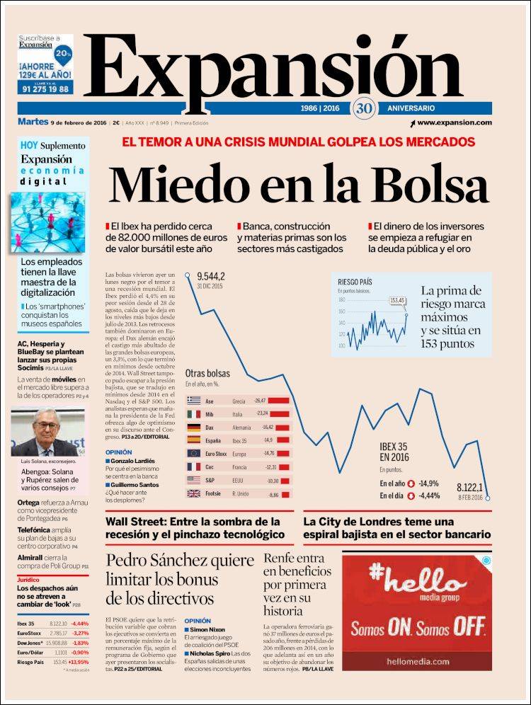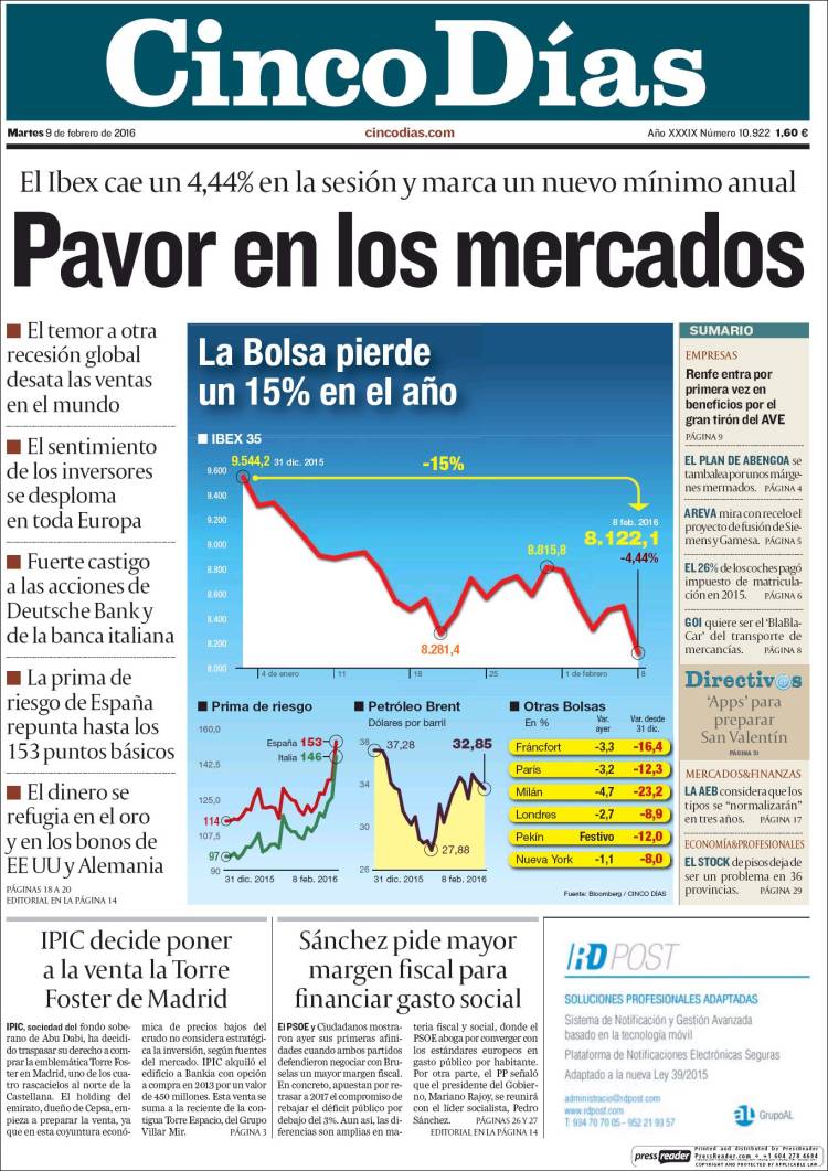 "El desplome de la Bolsa agrava la crisis por la falta de Gobierno"