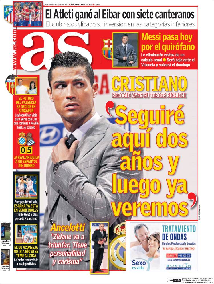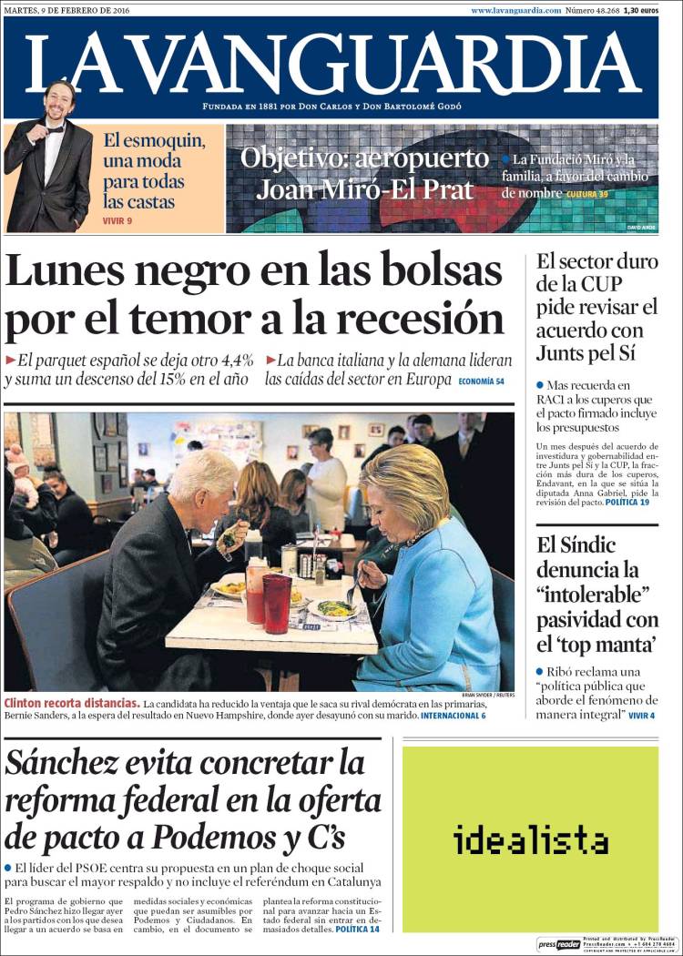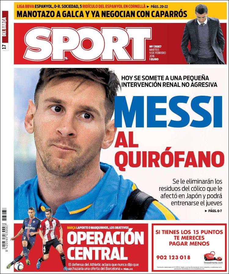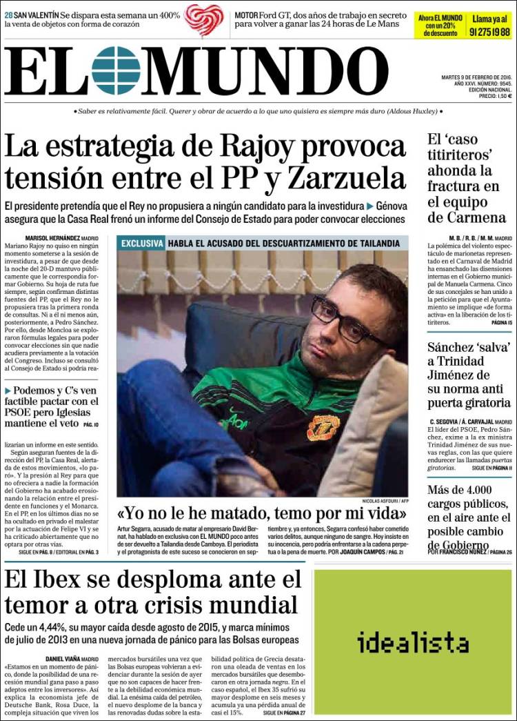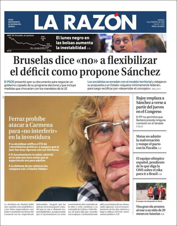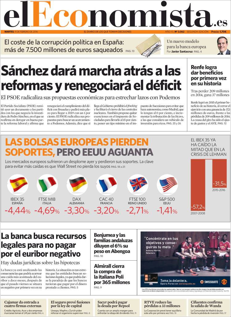 Portadas de los diarios El Mundo, El País, ABC, La Razón, La Vanguardia, El Periódico, Cinco Días, El Economista, Expansión, Marca, As, Mundo Deportivo y Sport.