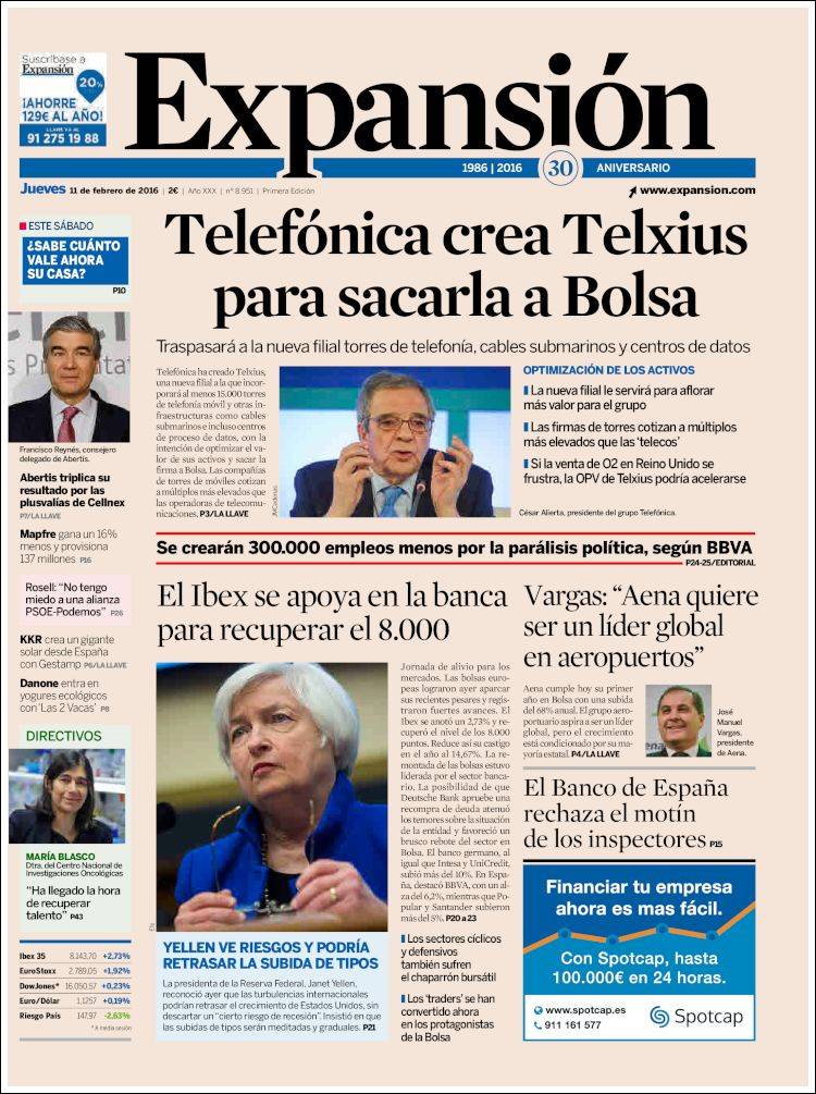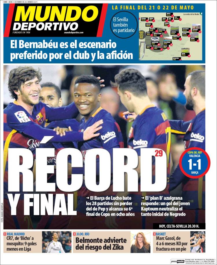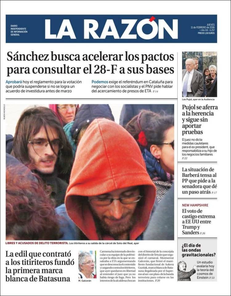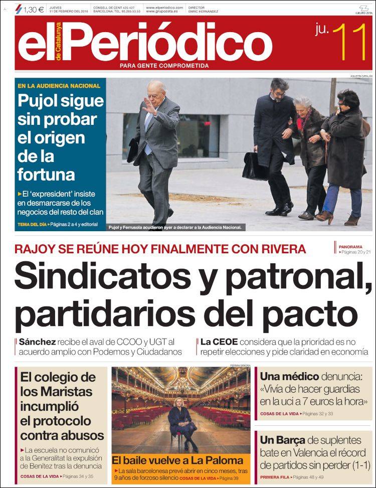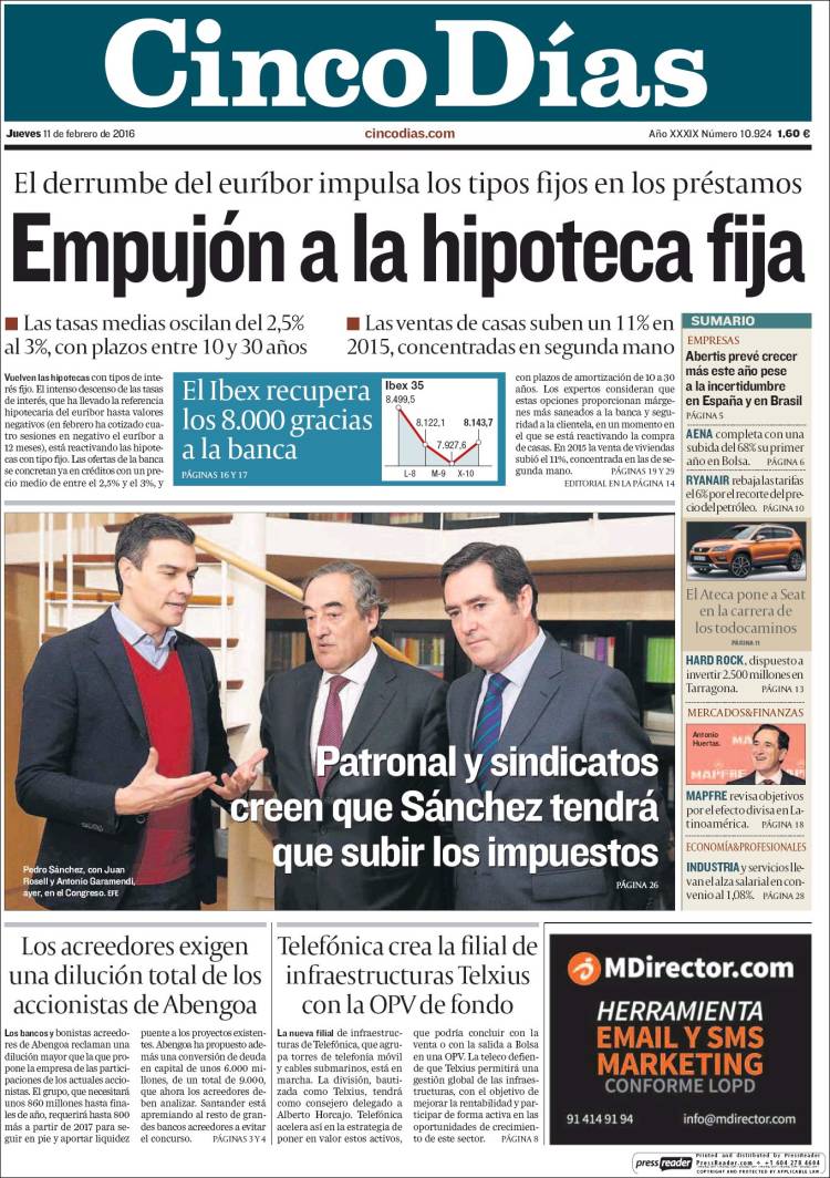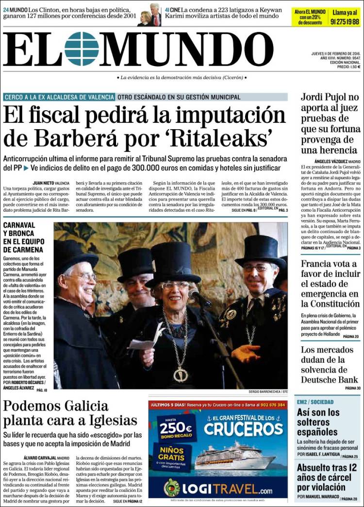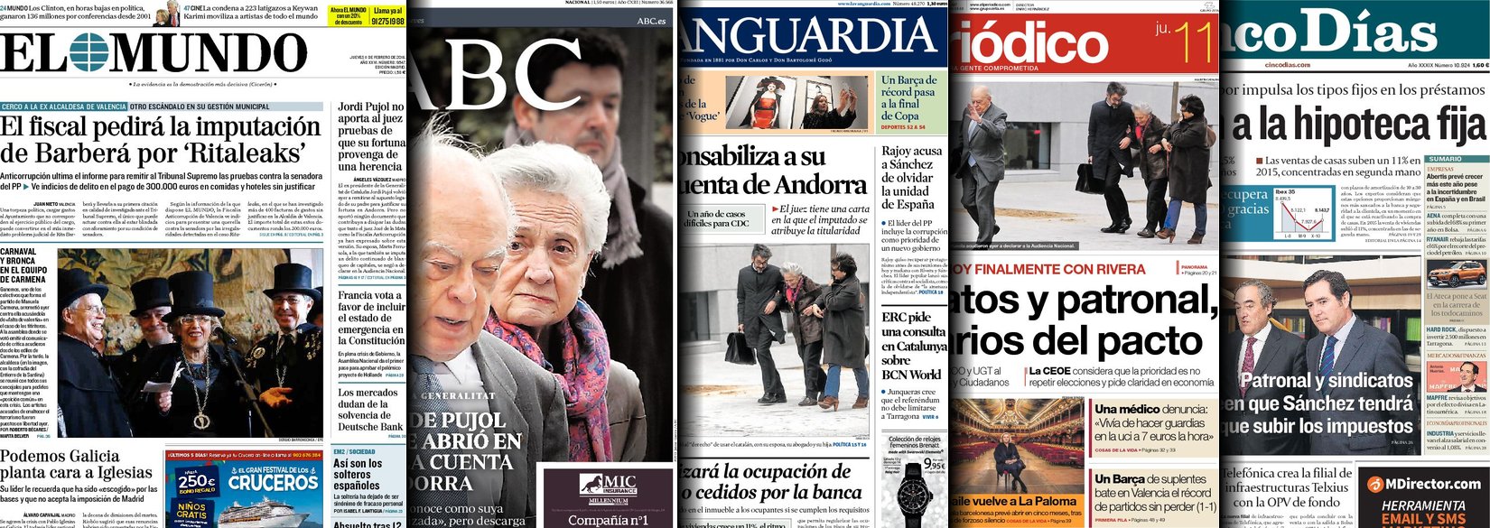Portadas de los diarios El Mundo, El País, ABC, La Razón, La Vanguardia, El Periódico, Cinco Días, El Economista, Expansión, Marca, As, Mundo Deportivo y Sport.