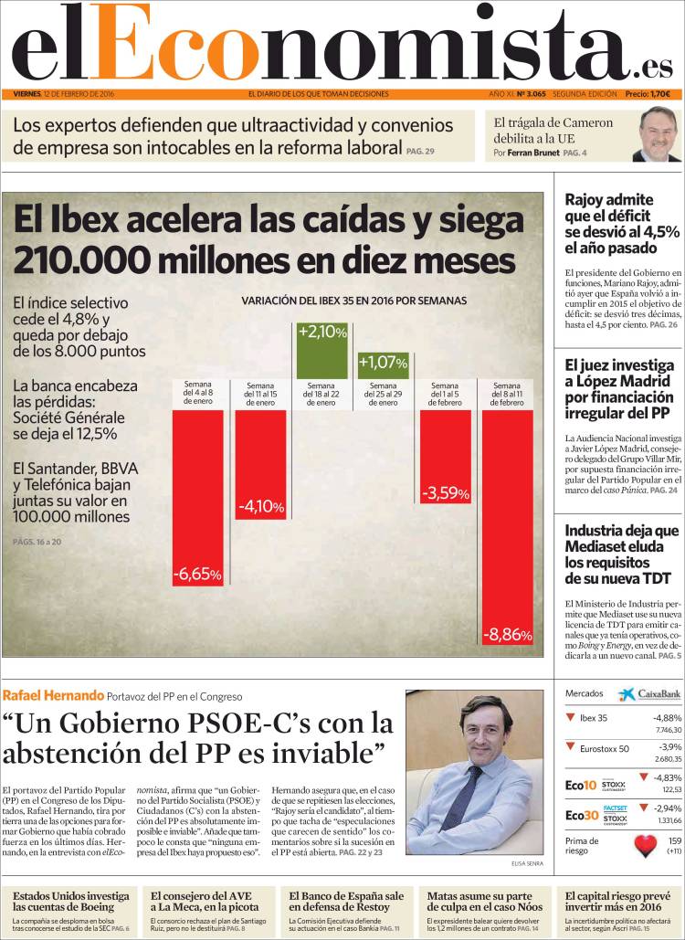 "El Ibex acelera las caídas y siega 210.000 millones en diez meses"