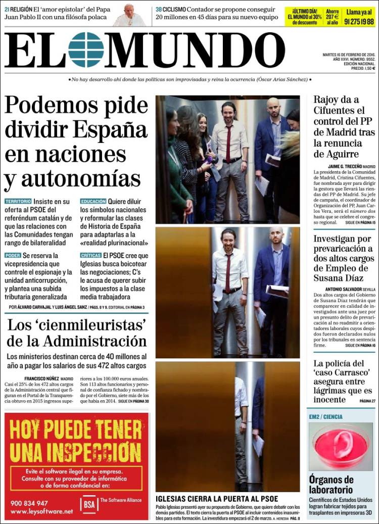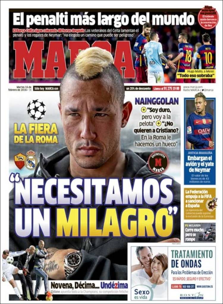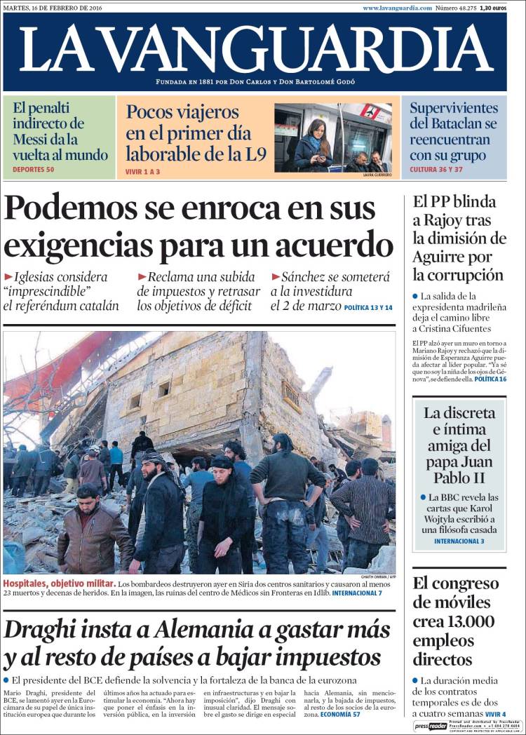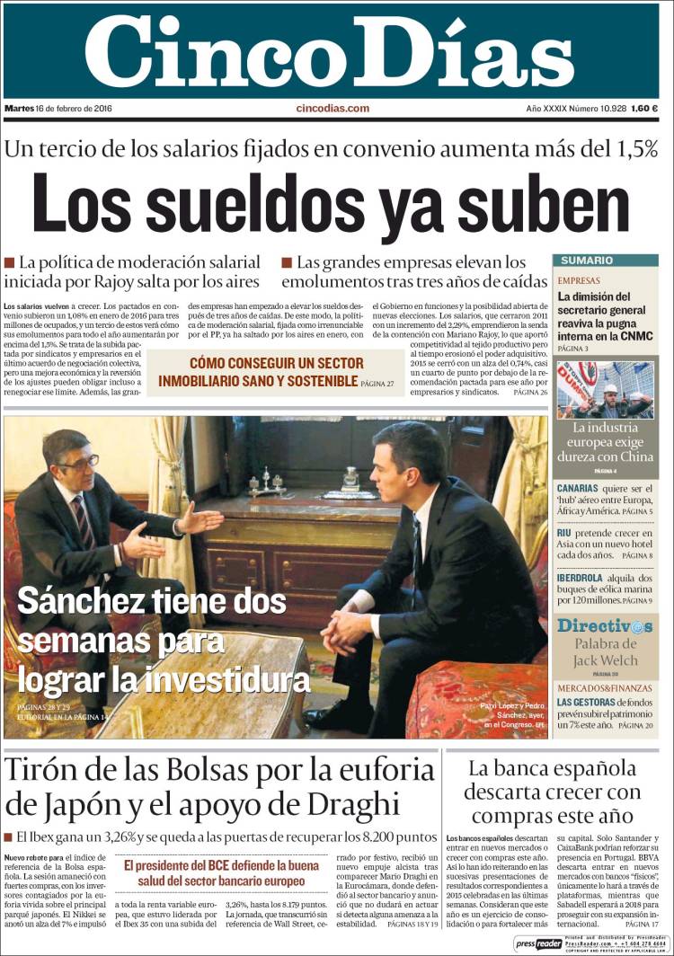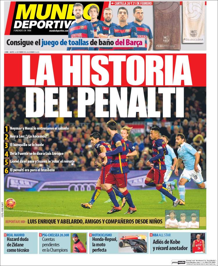 Portadas de los diarios El Mundo, El País, ABC, La Razón, La Vanguardia, El Periódico, Cinco Días, El Economista, Expansión, Marca, As, Mundo Deportivo y Sport.