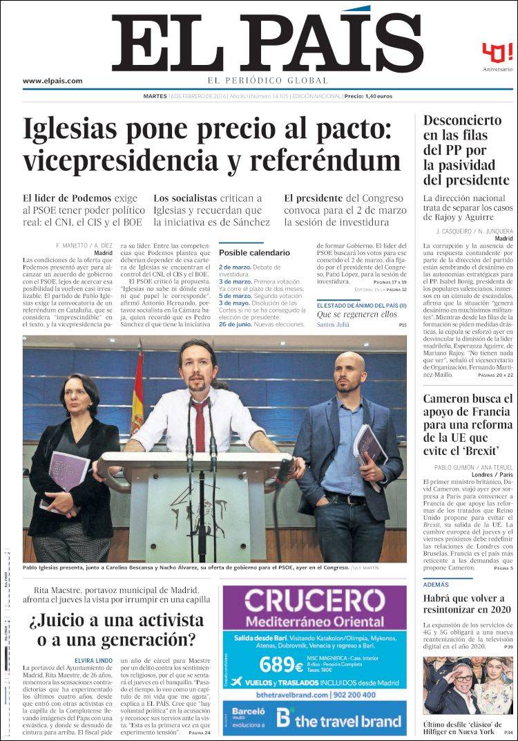"Iglesias pone precio al pacto: vicepresidencia y referéndum"