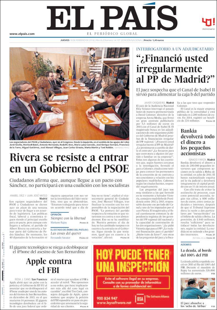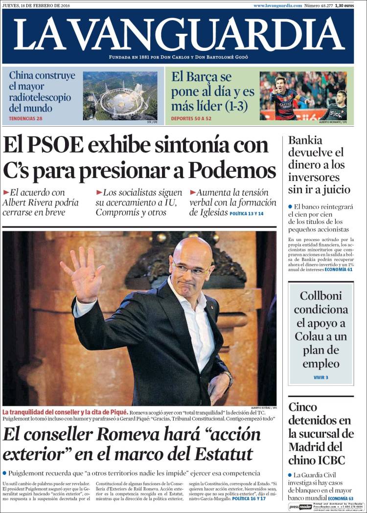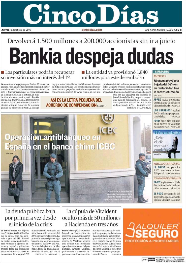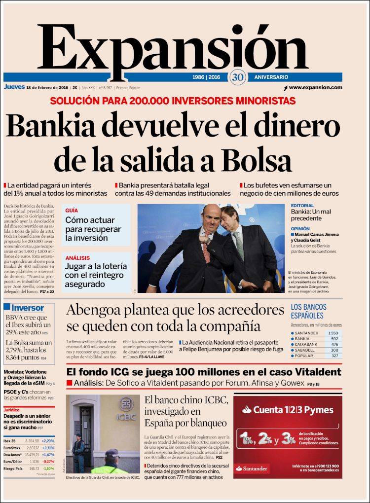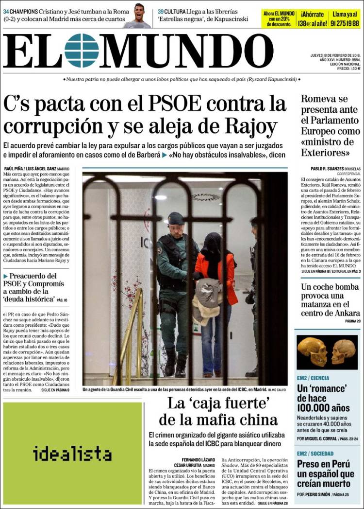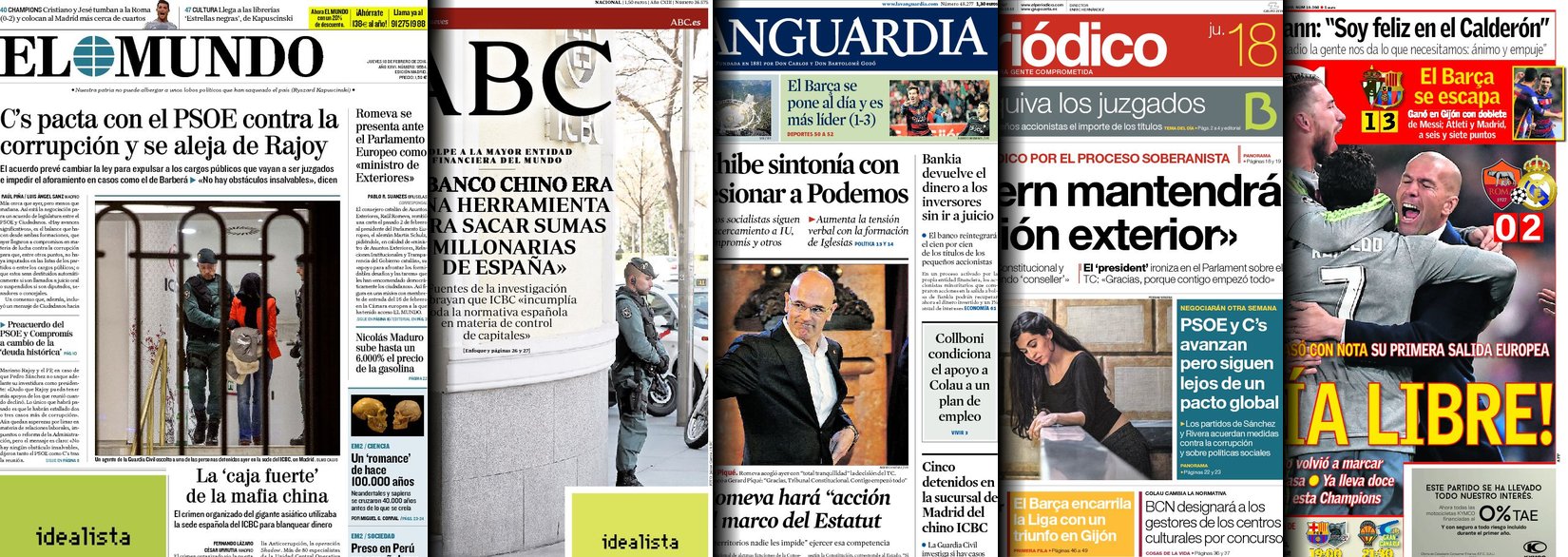 Portadas de los diarios El Mundo, El País, ABC, La Razón, La Vanguardia, El Periódico, Cinco Días, El Economista, Expansión, Marca, As, Mundo Deportivo y Sport.