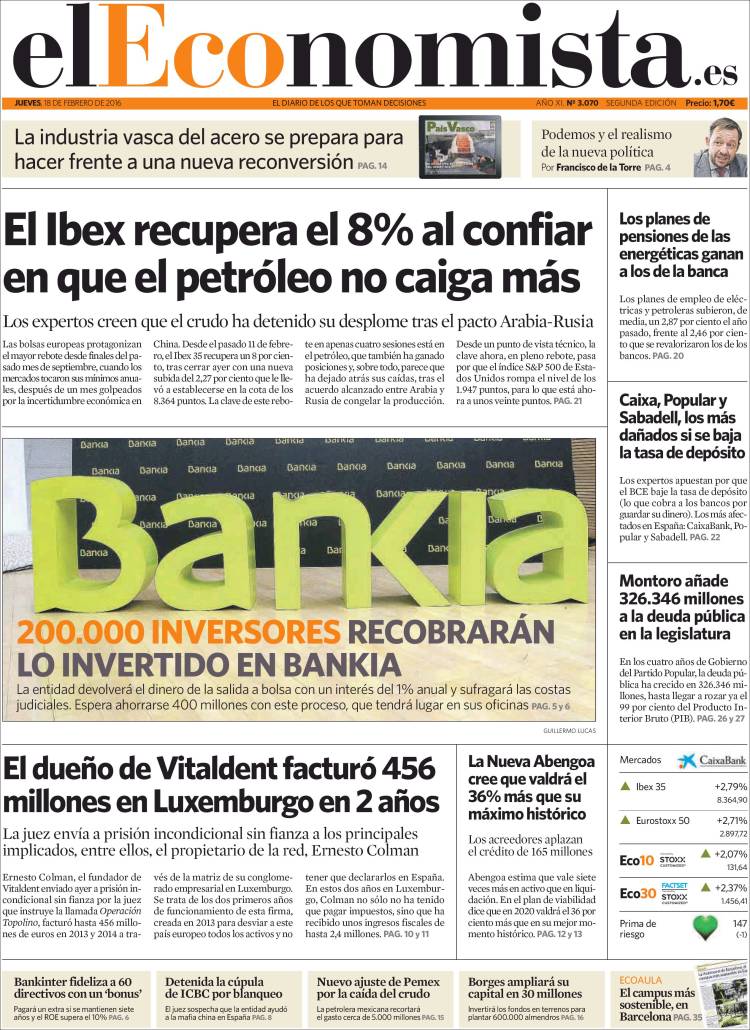 "El Ibex recupera el 8% al confiar en que el petróleo no caiga más"
