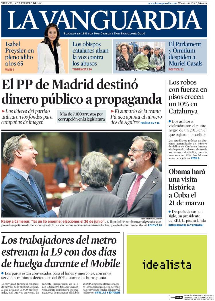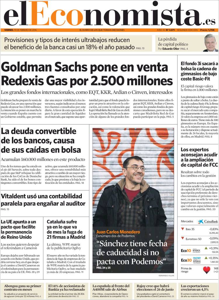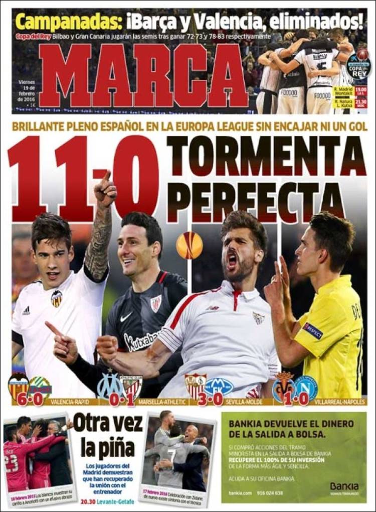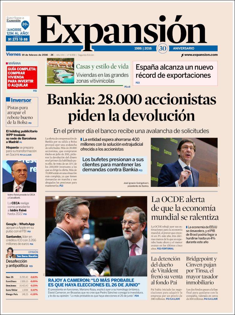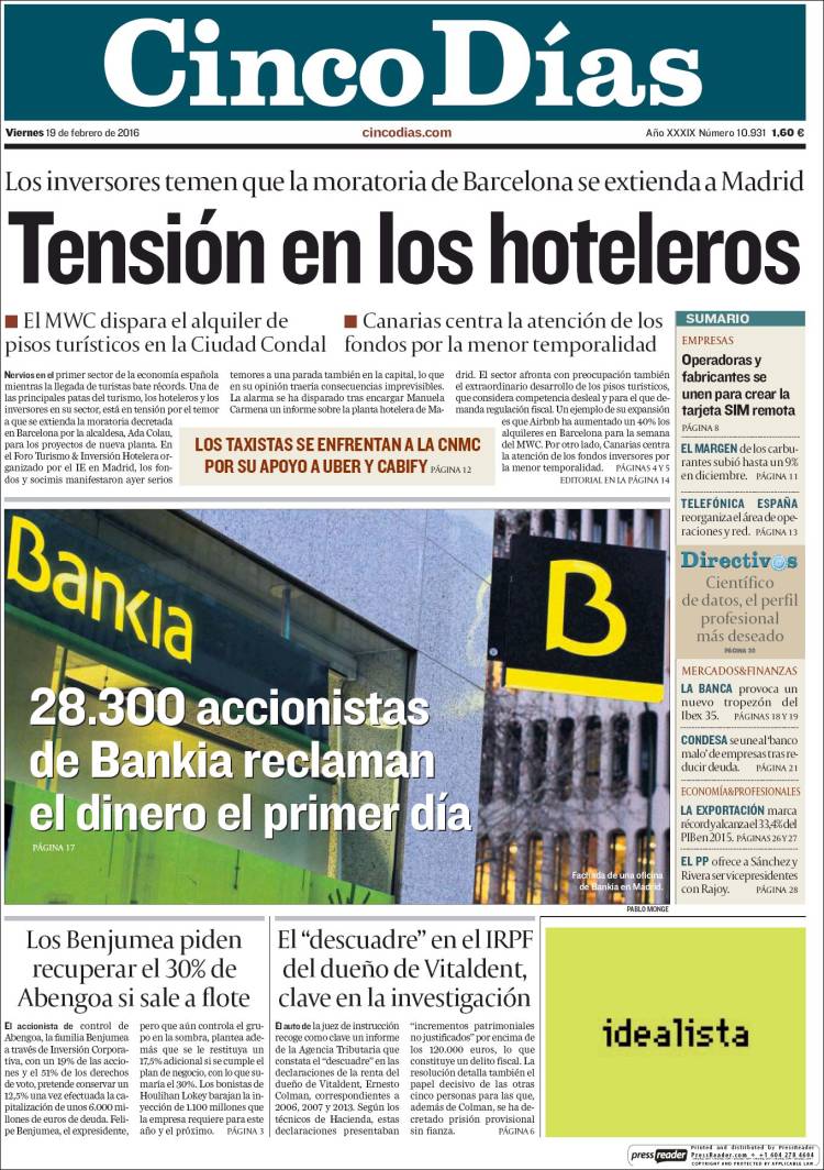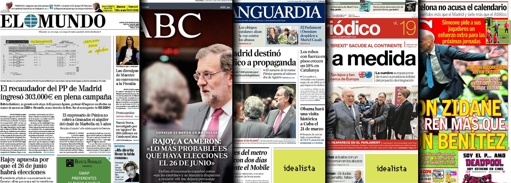 Portadas de los diarios El Mundo, El País, ABC, La Razón, La Vanguardia, El Periódico, Cinco Días, El Economista, Expansión, Marca, As, Mundo Deportivo y Sport.