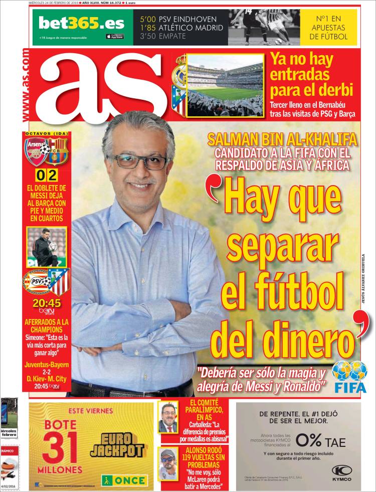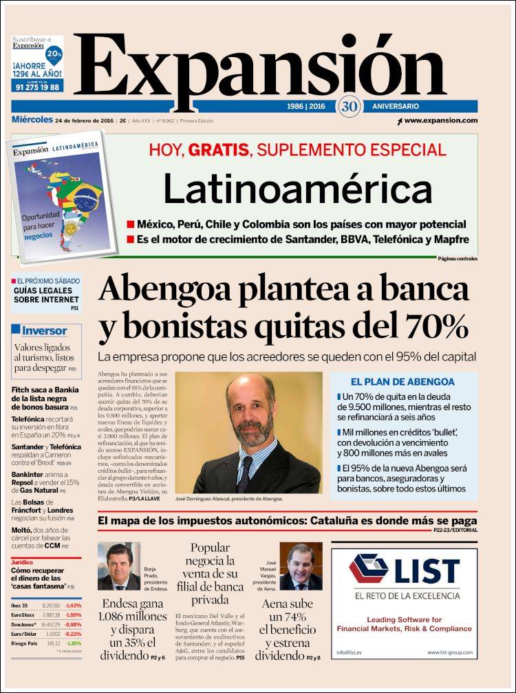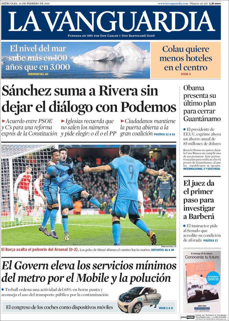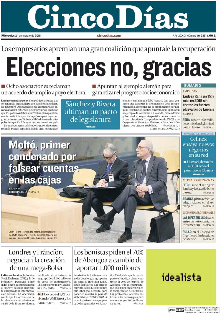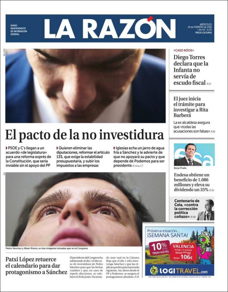 Portadas de los diarios El Mundo, El País, ABC, La Razón, La Vanguardia, El Periódico, Cinco Días, El Economista, Expansión, Marca, As, Mundo Deportivo y Sport.